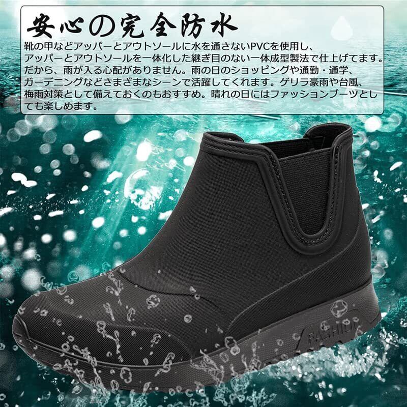 [todaysunny] レインブーツ メンズ レインシューズ 防水 雨靴 ショート ブーツ サイドゴア 短靴 軽量 防滑 おしゃれ アウトドア 通勤 通学 梅雨対策 台風 晴雨兼用 25.5cm-27.5cm