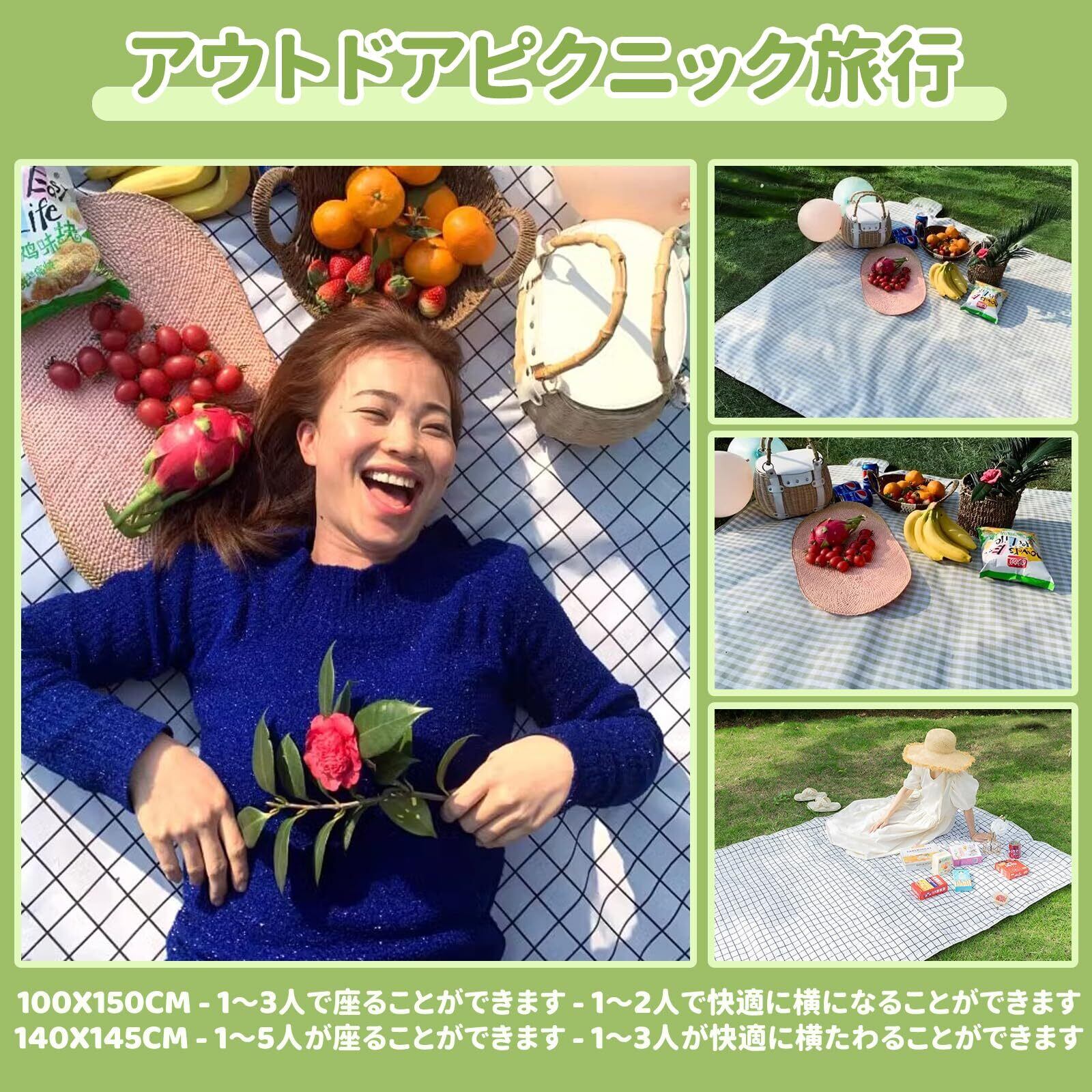 レジャーシート 厚手 折りたたみ 収納可能なピクニックマッ ト3人~5人用140x145cm 大判 超軽量 ポータブル レジャーシート キャンプ、ピクニック、花見、花火、ピクニックに最適