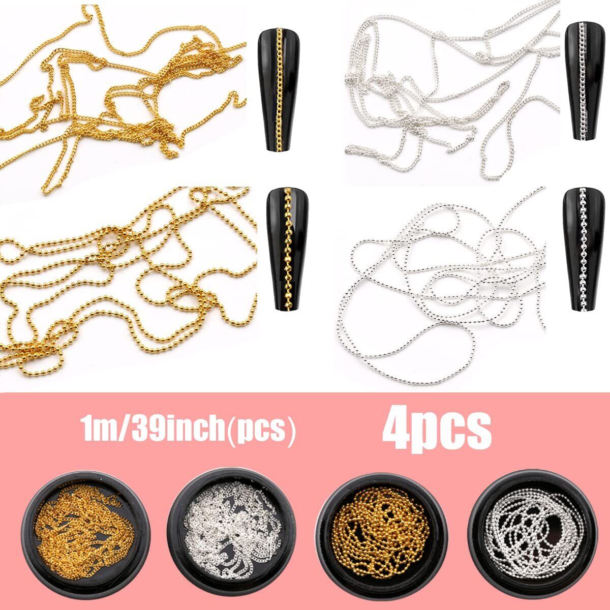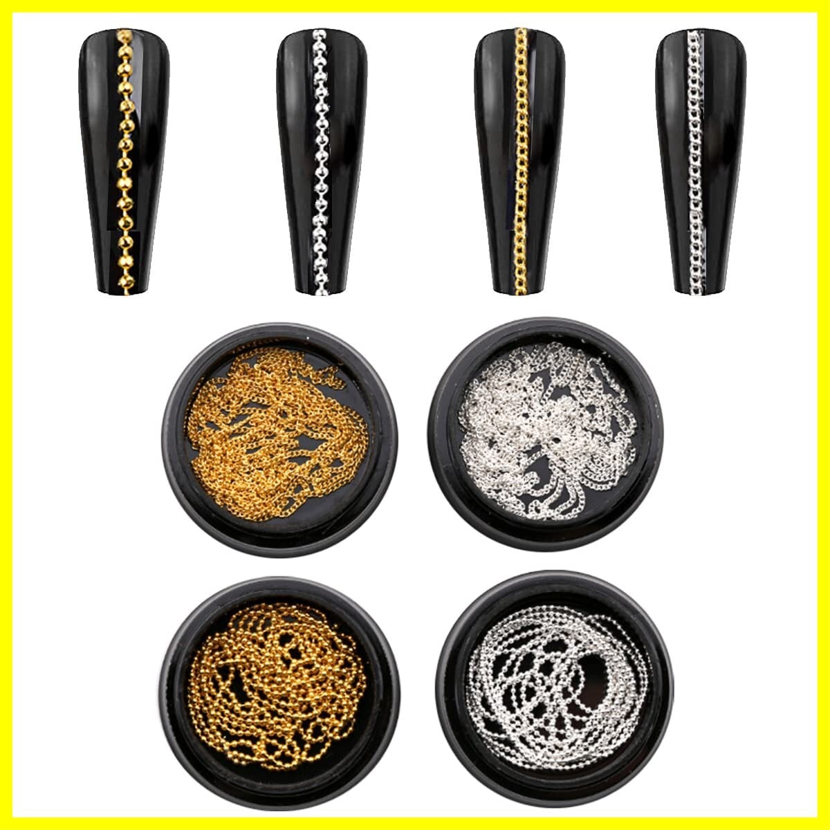 ネイルパーツ チェーン 4本入り ゴールド シルバー ネイル チェーン 極細 ネイル ボールチェーン 裁断可能 ジェルネイル チェーン ネイルアート パーツ 手芸 ハンドメイド デコパーツ アクセサリー (ゴールド+シルバー A)