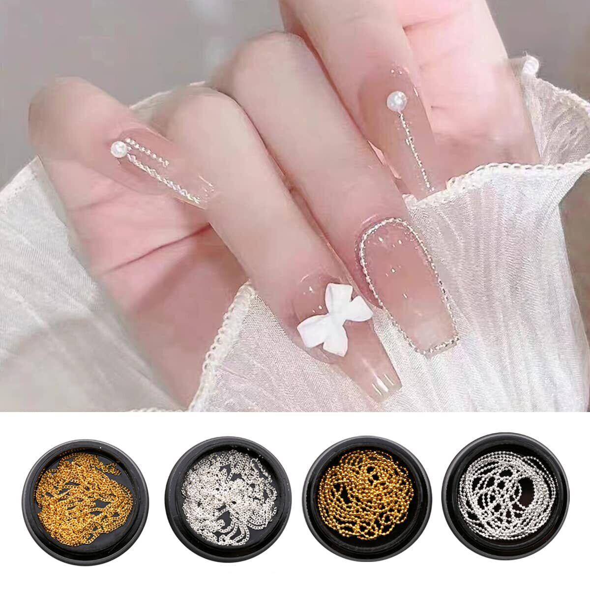 【ネイルチェーン】おしゃれなネイルチェーンパーツが登場!異なるスタイルがあり、ゴールドとシルバーの色は華やかで綺麗です。目を引くようなおしゃれなネイルができます。 【素材】良質な金属製のチェーンは光沢感があり、色あせにくく、耐久性も優れます。発色が綺麗で高級感があります。 【裁断可能】糸繋がりのために切りやすいです。適当な長さを裁断し、スタッズ、パール、ラインストーンなどのデコパーツと組み合わせて使用したり、単品で形を作ったり、おしゃれなネイルが作れます。 【幅広い用途】初心者でも簡単に美しいネイルデザインが完成できます。ネイルのワンポイントにはもちろん、ハンドメイド作品やスマホカバーの飾り、アクセサリー制作にも幅広くお使いいただけます。 【パッケージ】ネイルチェーン4本入り(サイズ:長さ1m、直径:1mm)
