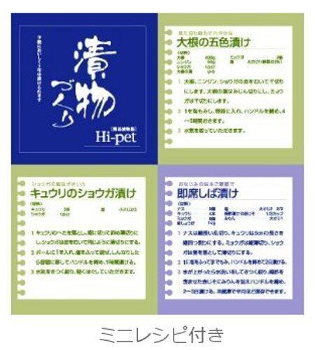 ●家庭で手軽に浅漬けを楽しめる漬け物容器です。●蓋は開閉がラクなワンタッチロック式。●フタを閉めると、簡単にロックがかかる構造なので、大変便利です。●漬ける食材の量に応じて、ハンドルを回して、押し込む圧力が調節できます。●ミニレシピ付き。