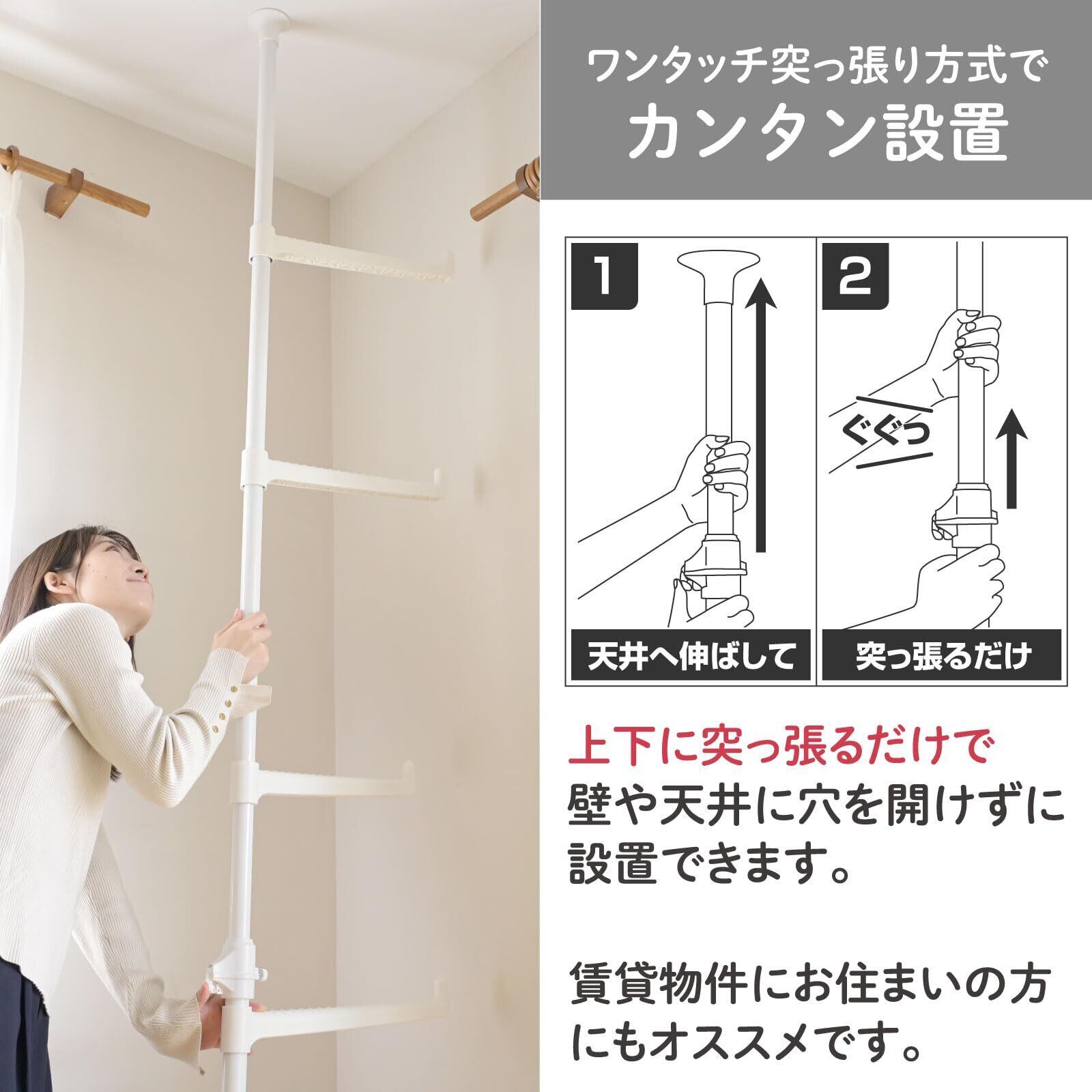 山善(YAMAZEN) 突っ張り ラック 室内物干し ワンタッチ突っ張り(実用新案取得済) 洗濯物干し 物干し竿 室内 耐荷重20kg ポールハンガー 物干し タオルハンガー 省スペース 幅69×奥行69×高さ190-260cm 組立品 ホワイト WJL-LH4(WH)