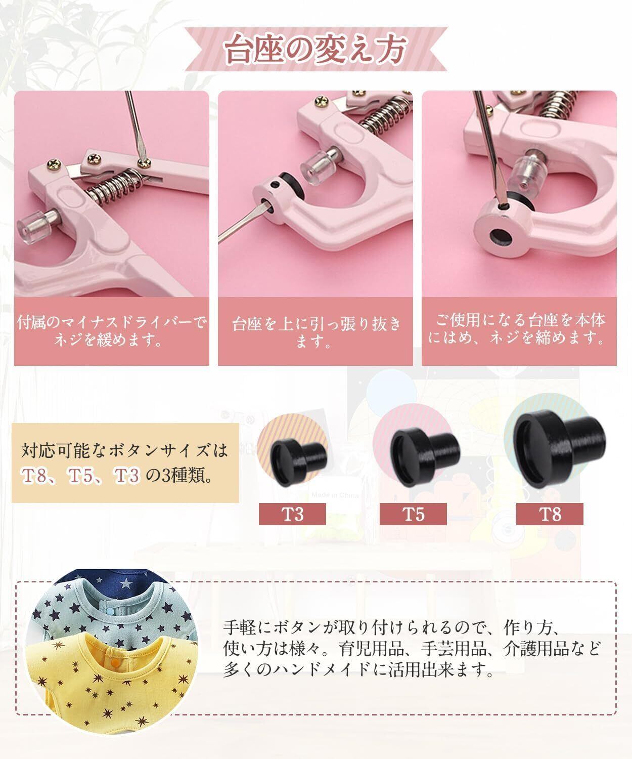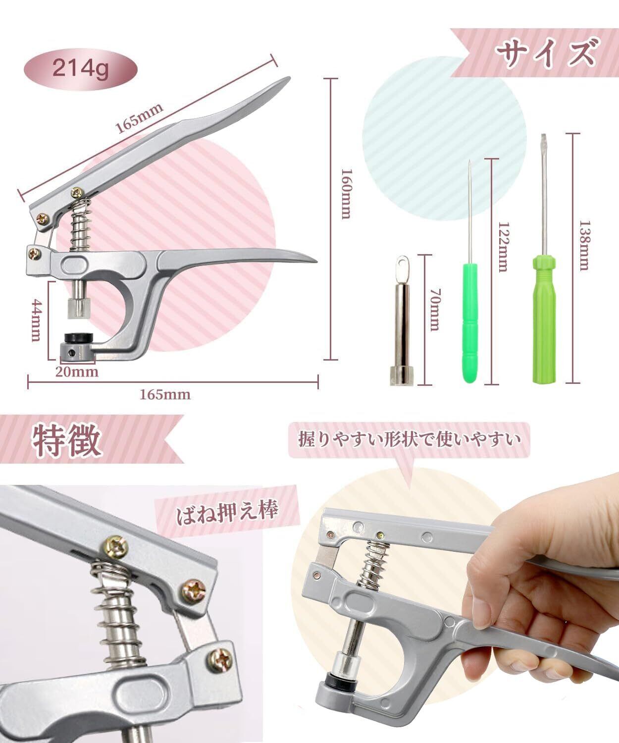 LIANHATA ハンディプレス セット T8 T5 T3に対応 DIY 手芸 裁縫用 スナップ ボタン 取付簡単 ビニール袋 衣服 テーブル (シルバー)
