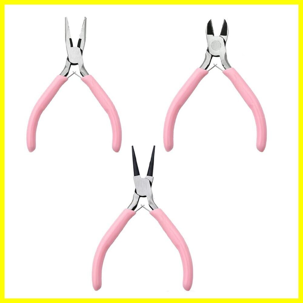 CXINCFBFUSH 手芸用 ペンチ 3点セット ハンドメイド 製作 ビーズ工具 DIY手作りへ ステンレス製 プライヤー(ピンク)
