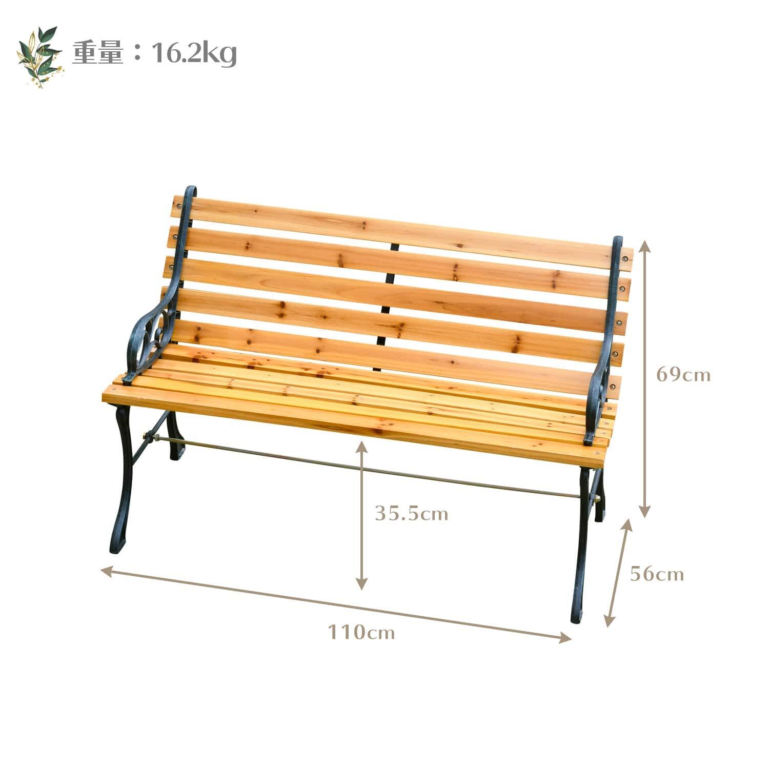 ガーデンマスター(Gardenmaster) ガーデンベンチ パークベンチ 幅110×奥行56×高さ69cm スチールベンチ チール 天然木 お庭 ベランダ テラス バルコニー 休憩所 NPB-10C