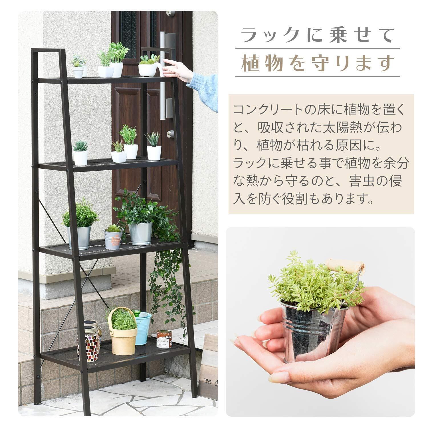 ●室内でも屋外でも使えるガーデンラック4段タイプ。