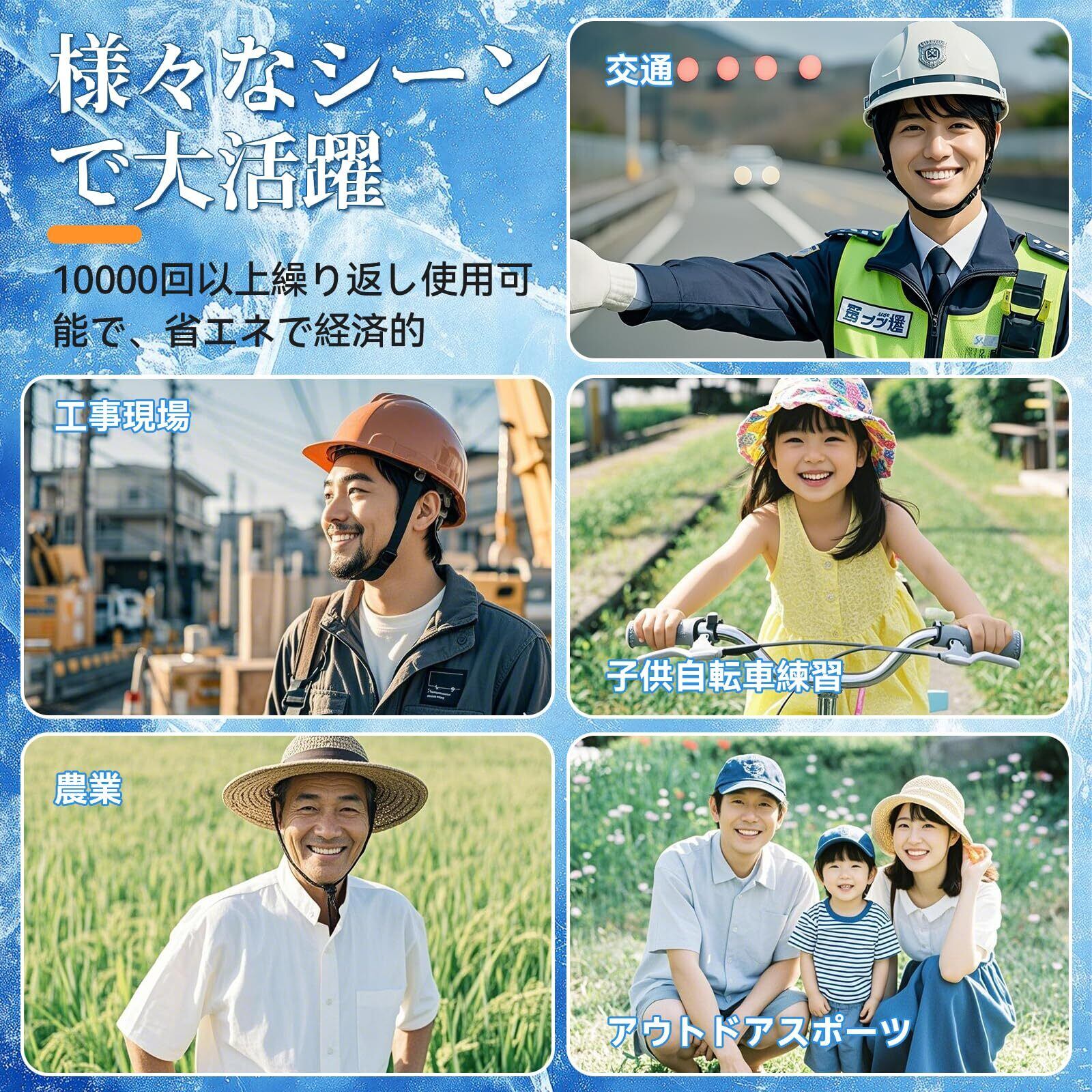 【28℃自然冷却技術で厳しい暑さを乗り切ろう!】このPC-Mキャップは、独自の自然冷却技術を採用しています。従来の冷却マットとは異なり、P-CM(Phase Change Material、相変化材料)を採用され、相変化温度28℃に達すると、周囲の熱を吸収して接触物体の温度を下げくれ、電気代を節約しながら快適なひんやり感を実現。頭部と全身を心地よい涼しさで包み込みます!P-CM冷却帽子パッドは28℃以下で自然に冷却され、何度でも繰り返し使用できる製品です。頭部を冷やすことで、全身の熱も冷やすことができます。P-CM技術による冷却効果で、適度な涼しさを保ち、快適な温度をキープします!製品が溶けても、冷凍庫に入れるだけで再び凍らせて繰り返し使えます!高温多湿の環境での作業や活動中に、熱中症を予防するために使用できます。特に高齢者や子供にとって安心です。