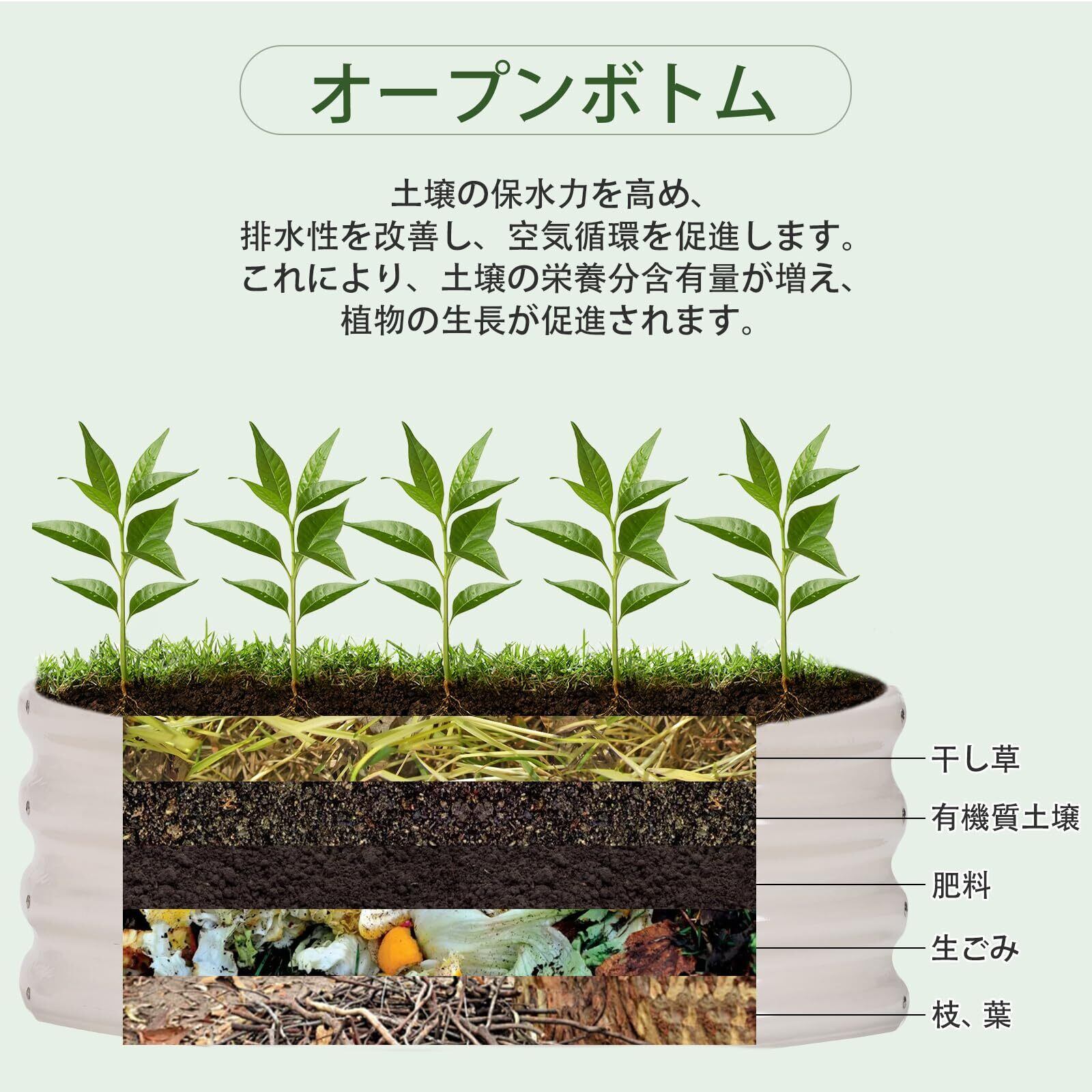 多用途設計:楕円形のガーデンベッドには、夢の庭を育てるのに必要なスペースがすべて備わっています。花や植物を植えて庭を飾るだけでなく、野菜や果物を植えたり、栽培を楽しんだりするのにも向いています。