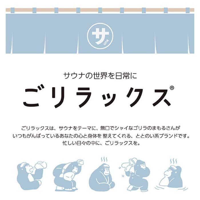 ごリラックスは、サウナをテーマに、無口でシャイなゴリラのまもるさんが、いつもがんばっているあなたの心と身体を整えてくれる、ととのい系ブランド。