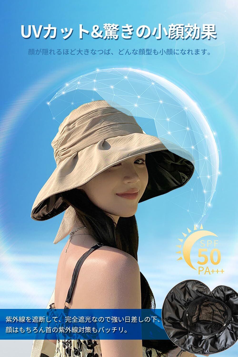 [Gokamoi] UVカット 帽子 レディース ハット レディース 日焼け防止【つば広・小顔効果・折りたたみ・サイズ調節】 遮光 遮熱 通気 紫外線対策 日除け帽子 ワイヤー入り あご紐 散歩 旅行 通勤 大きいサイズ 春夏