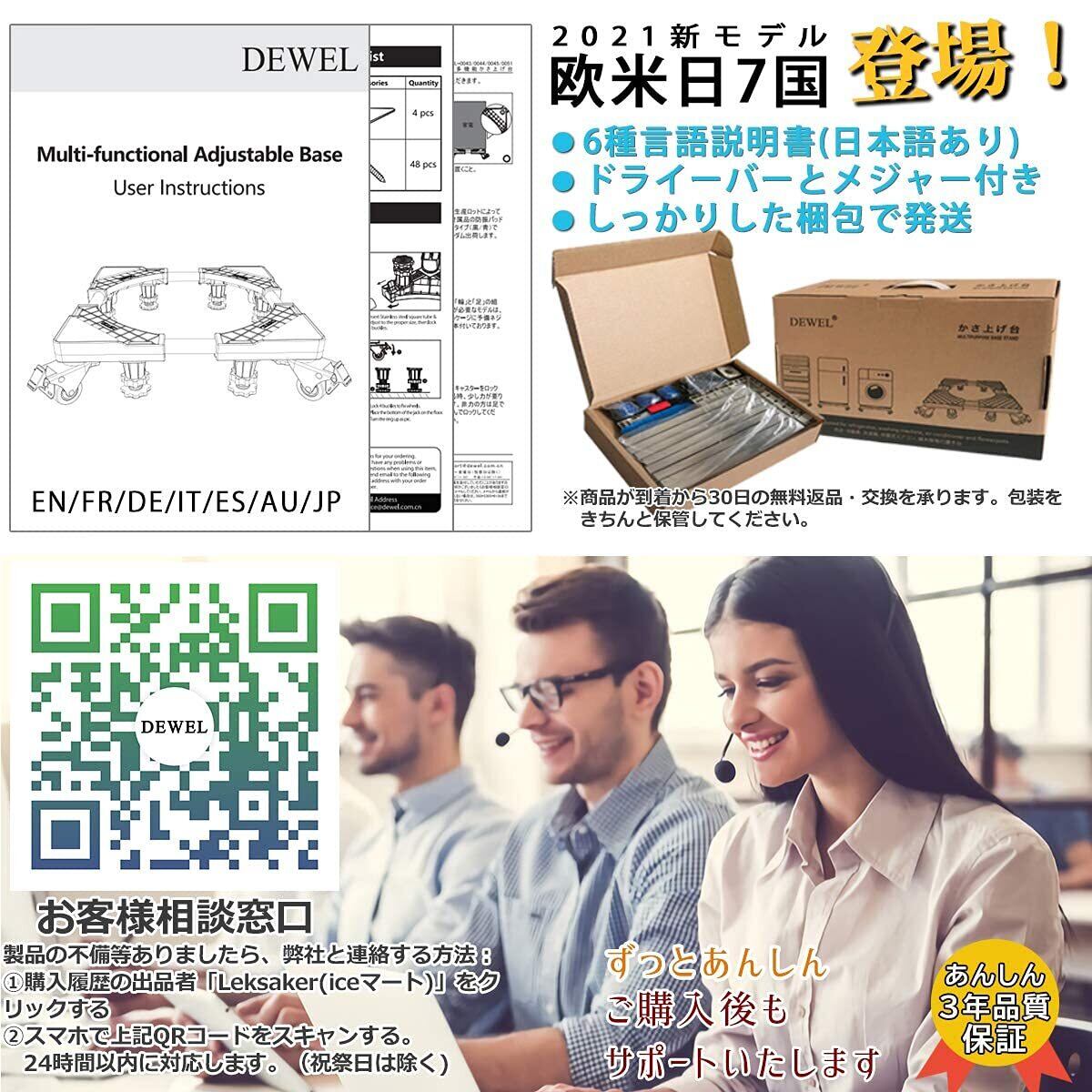 洗濯機 台 DEWEL 冷蔵庫置き台 13~17CM高度調節 増大増高ジャッキ付き 耐荷重約500kg かさ上げ 高さ調節 伸縮式 幅/奥行44.8~69cm 減音防振 調節簡単 昇降可能 4足 ステインレス製 防振パッド付き