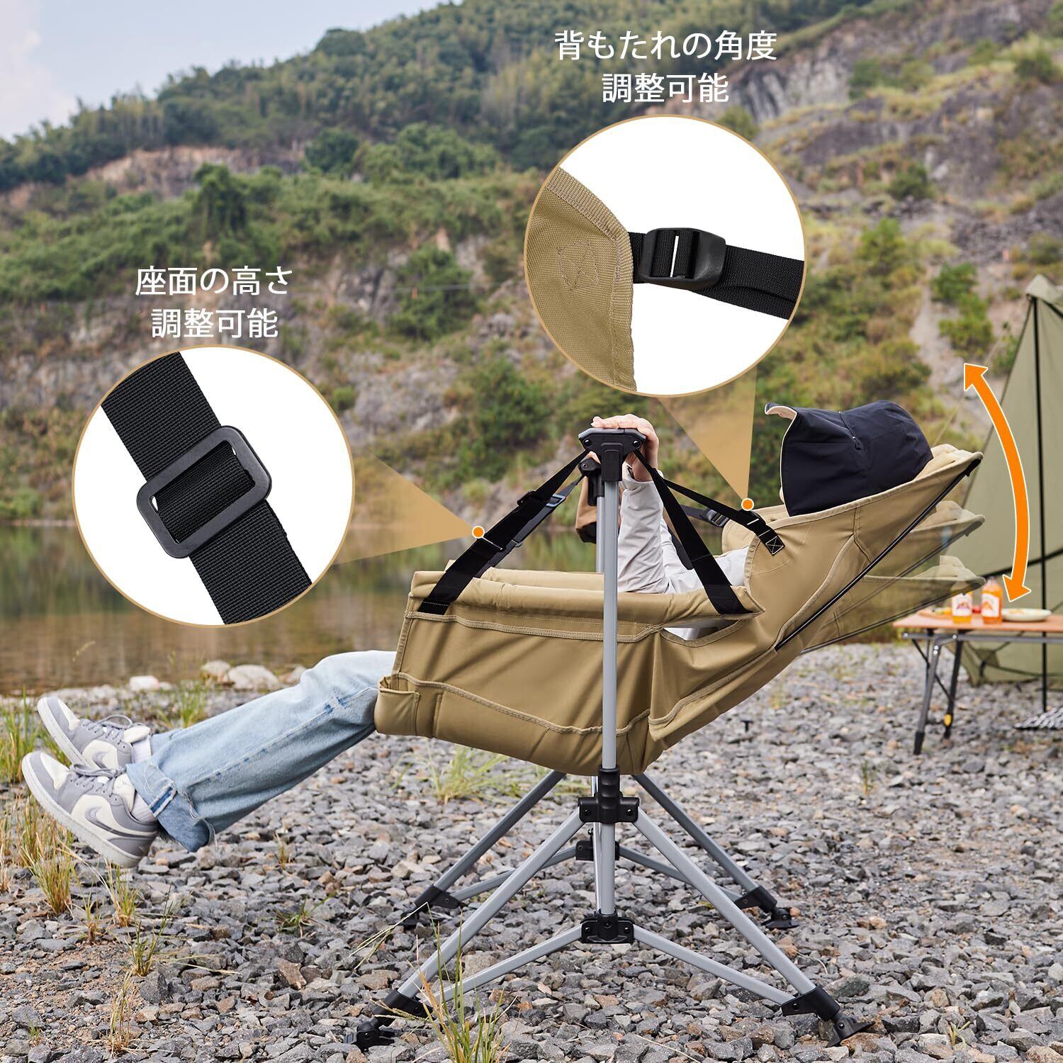 →【幅広い用途】キャンプチェア、ハンモックチェア、ガーデンチェアなどとして、アウトドアシーンで幅広くお使いいただけます。同時に、リラックスチェアや昼休みのリクライニングチェアとして、自宅やオフィスでの室内使用にも適しています。