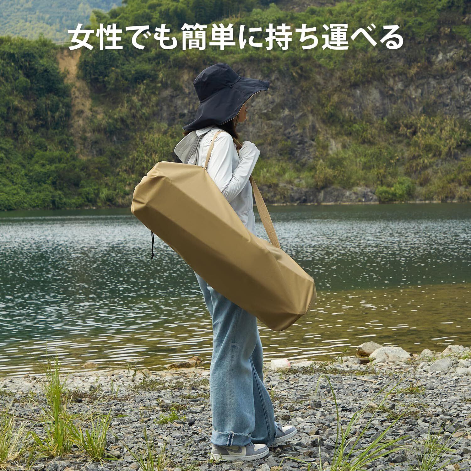 【組み立て簡単&携帯性】:フレームを広げ、座面をフレームに掛けるだけで、30秒もかからずに組み立てが完了します!使用後はわずか27*86cmの収納バッグに入れられるので、場所を取らず、持ち運びも簡単です。