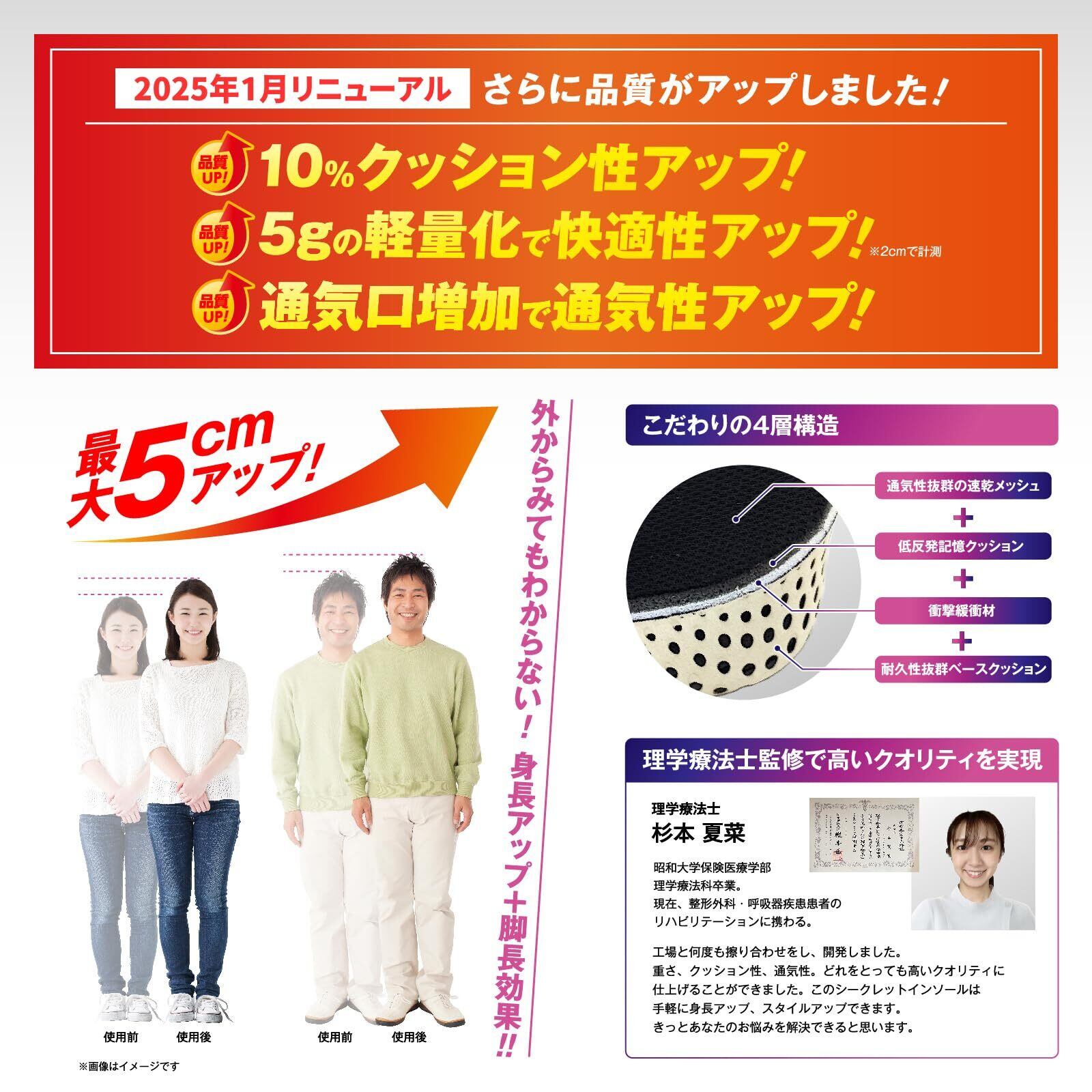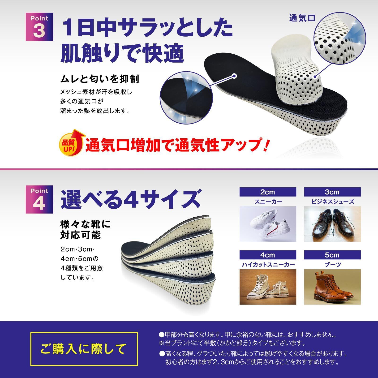 【選べる4サイズ】高さは選べる4サイズ:2cm、3cm、4cm、5cm。お手持ちの靴に入れるだけでお悩みを一瞬で解消する、シークレットインソールです。