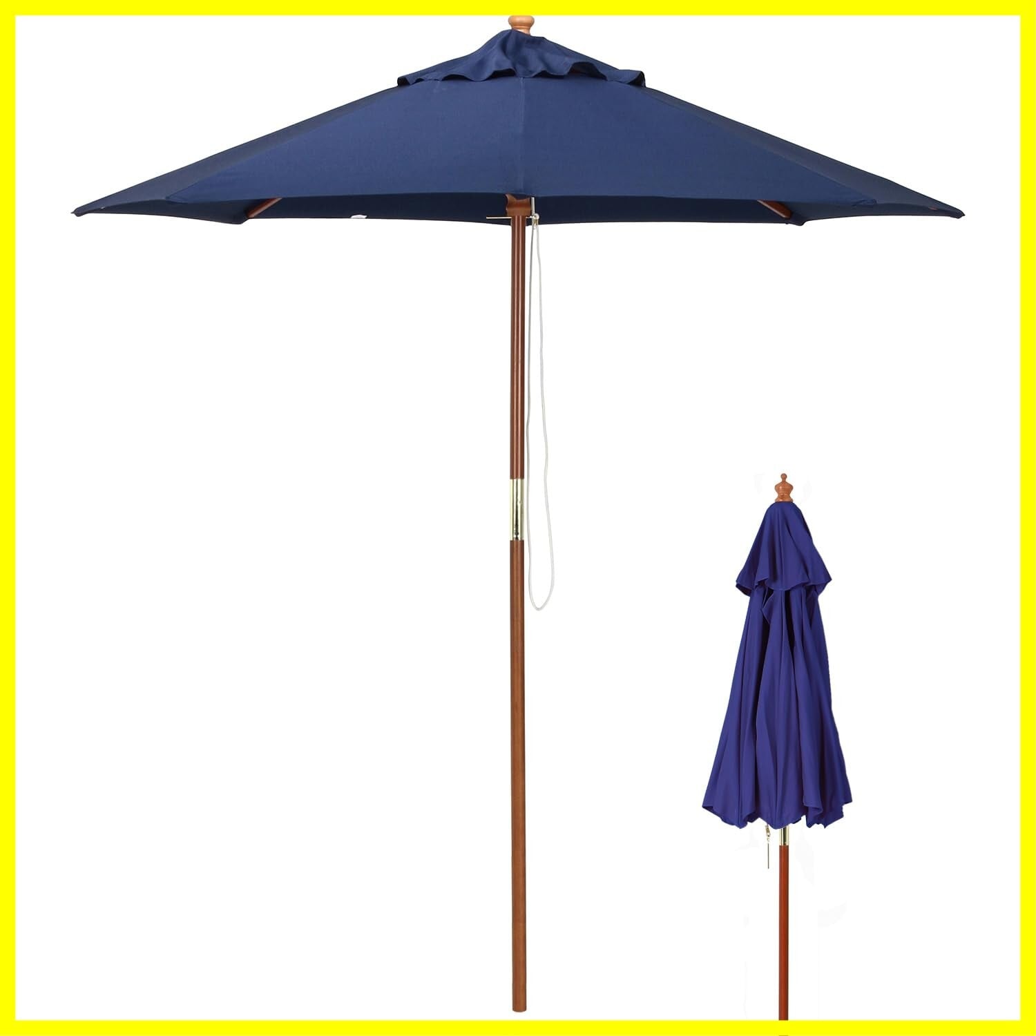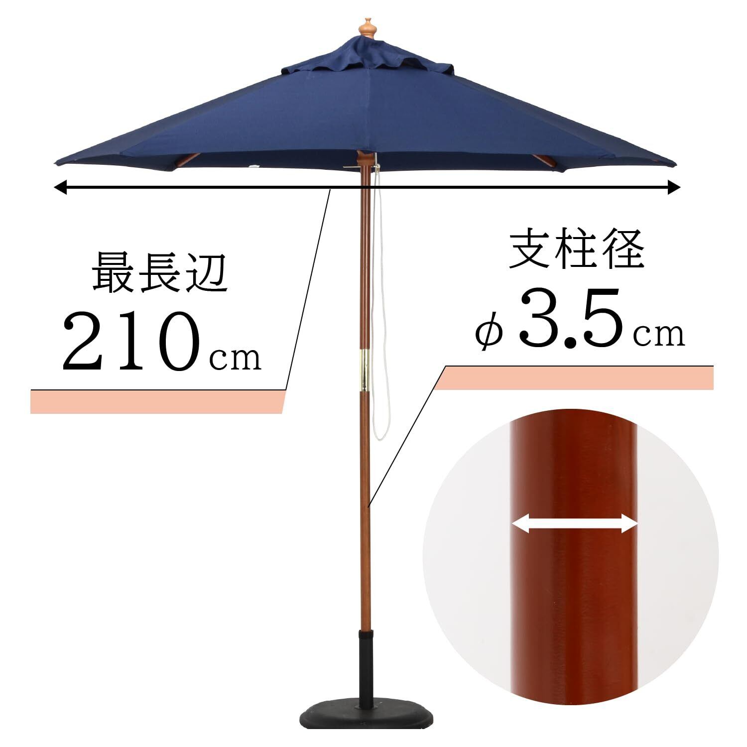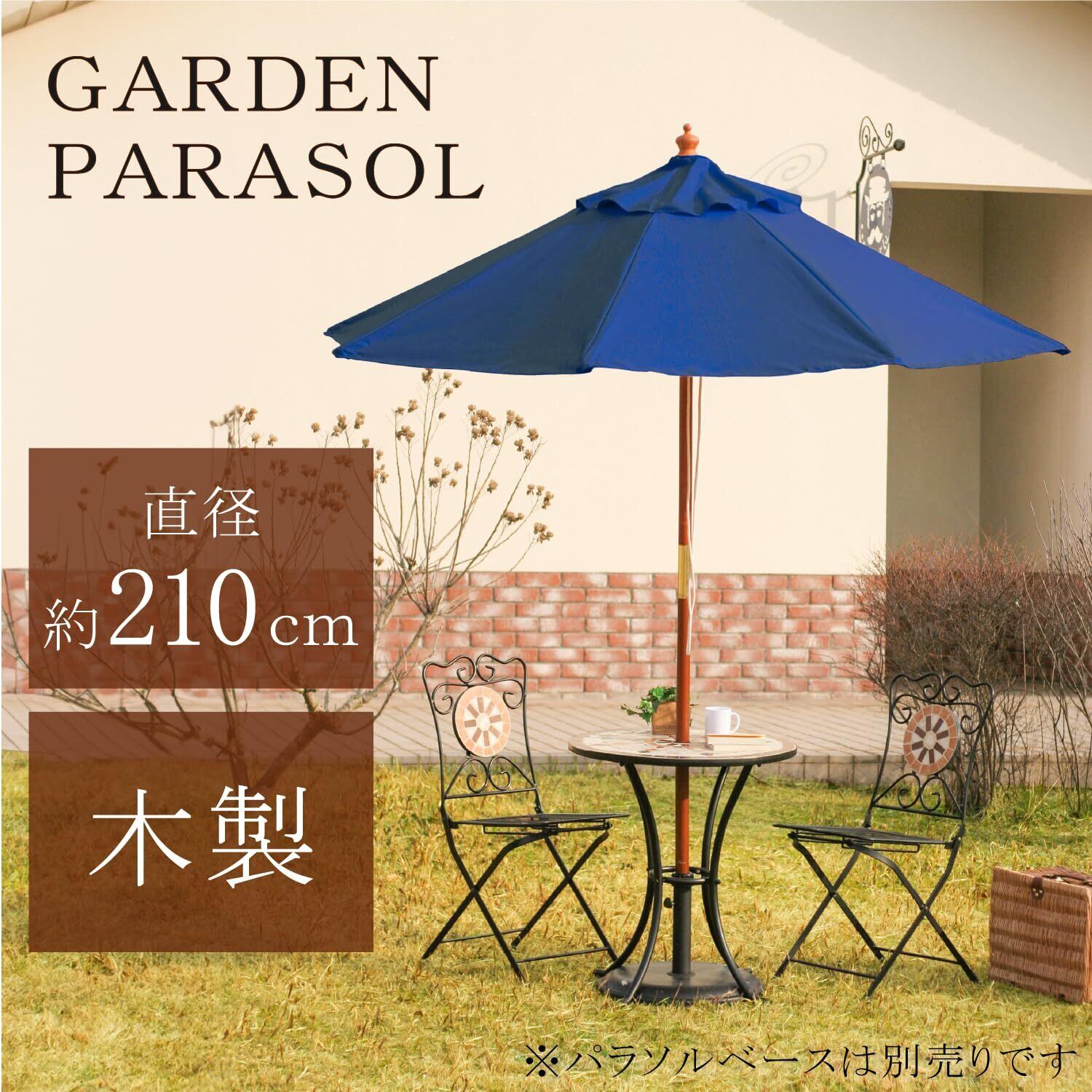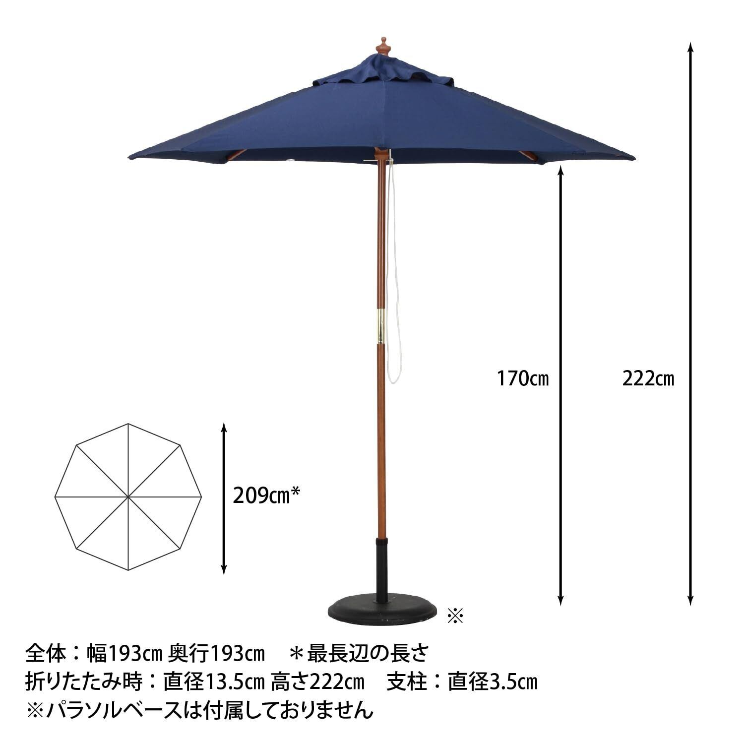 不二貿易 ガーデンパラソル 展開時最長辺210cm UVカット率99.9% 折りたたみ 大型 木製 ネイビー 60158