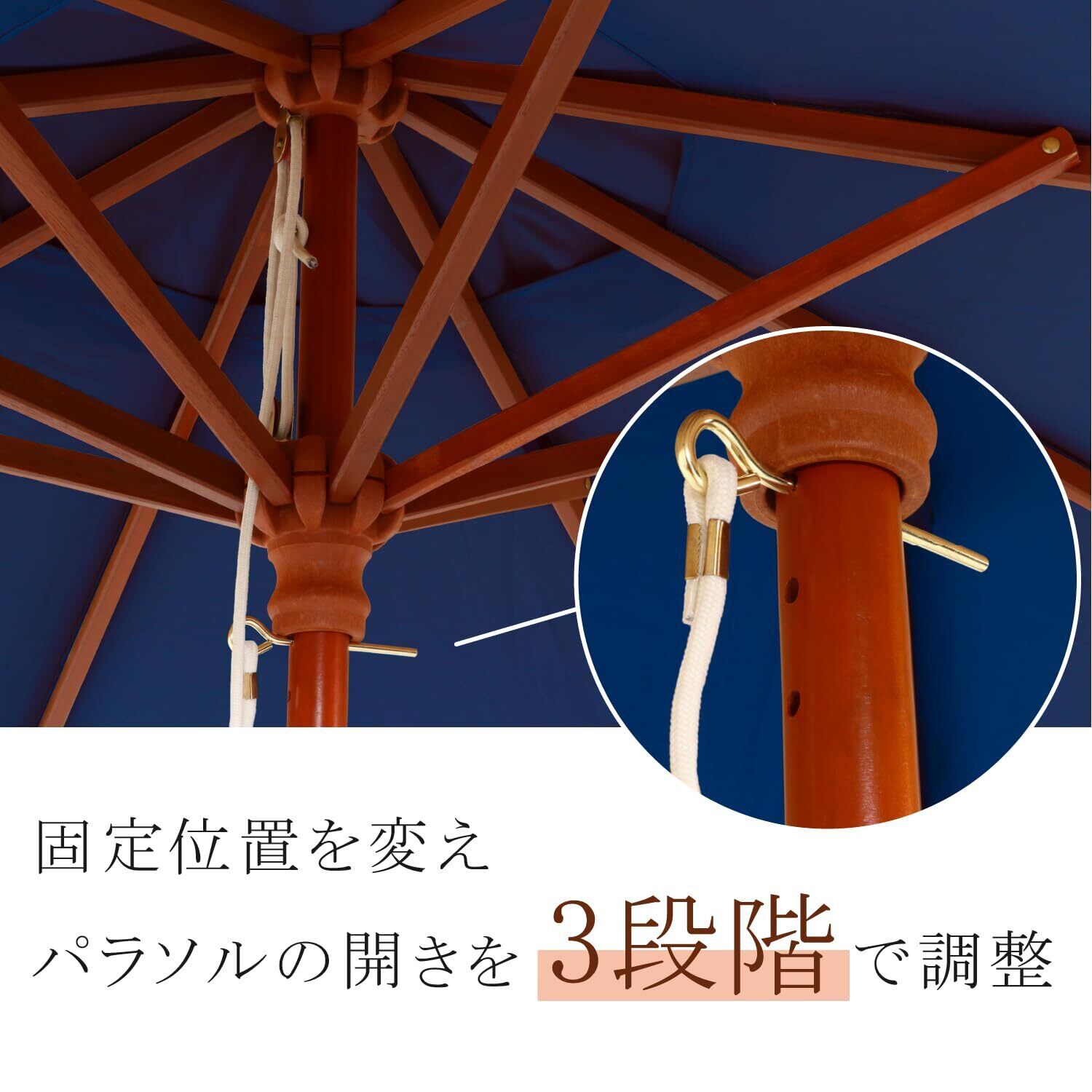 パラソルの開閉具合は3段階に調整可能です。