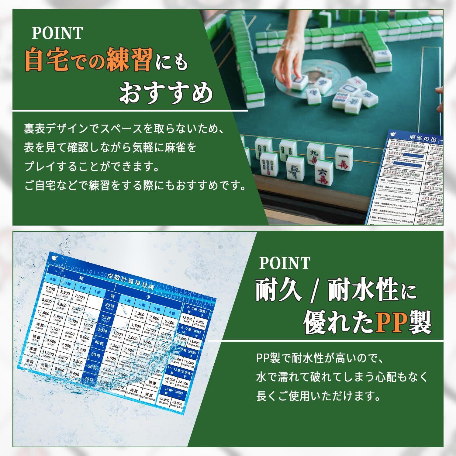 麻雀初心者向け点数早見表の下敷きです。