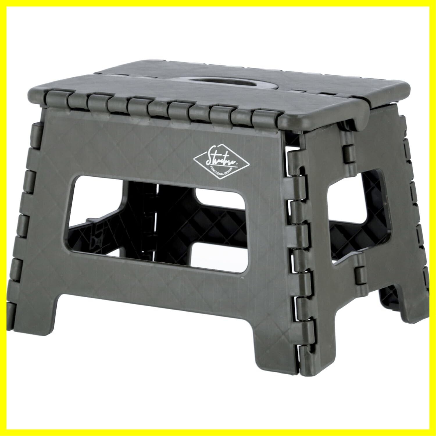不二貿易(Fujiboeki) 折りたたみ椅子 踏み台 ステップ 幅32.5×奥行25.5×高さ22cm カーキ アウトドア コンパクト スツール 耐荷重150kg 86073