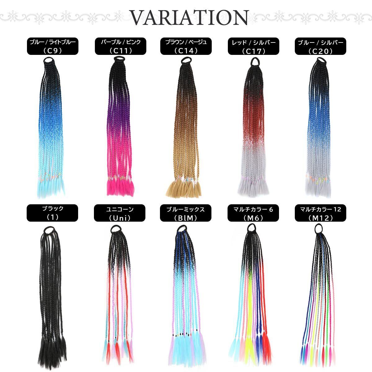 【着用方法】 ゴムで簡単装着、重ね付けも可能!【シリコンゴムのカラーについて】三つ編みをとめているシリコンゴムのカラーはランダムとなります。ご了承くださいませ。