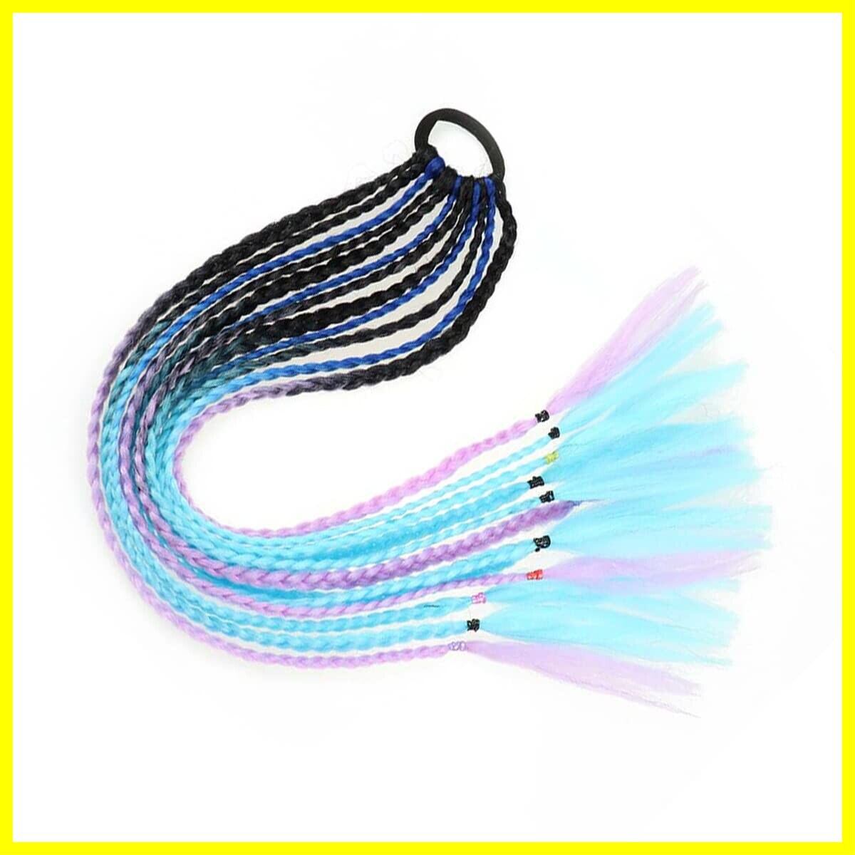 [TefuRe] 三つ編み エクステ ポニーテール つけ毛 キッズ ダンス ゴム で簡単装着 ブレイズエクステ動画有 水色 ブルーミックス Q37-BlM