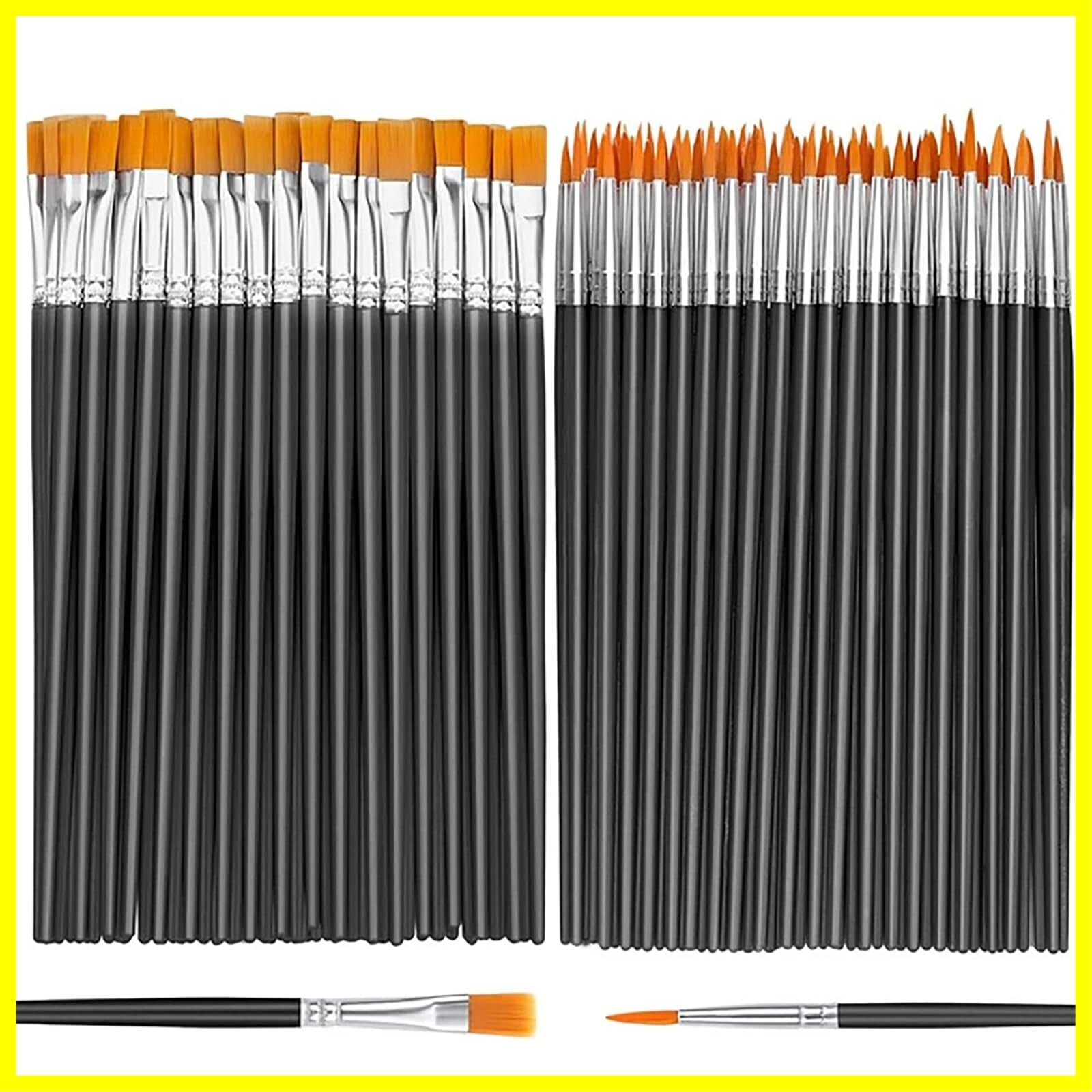 平筆 勾線筆 絵筆 100本セット 画材筆 水彩筆 プラモデル 塗装 油絵 水彩画 フィギュア 筆 (勾線筆+ 平筆(ブラック))