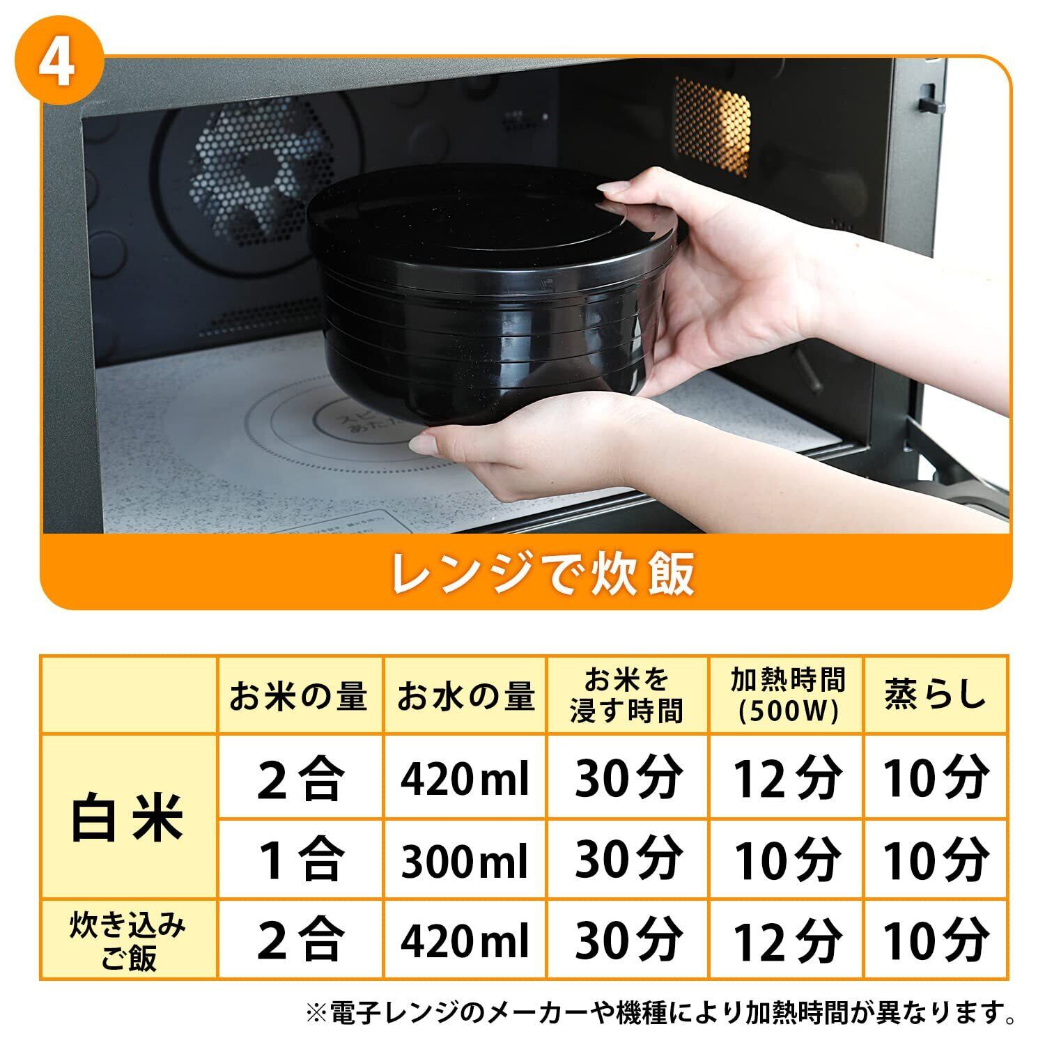 【電子レンジでかんたん炊飯】:本体容器でお米を洗って、お水を加えてそのまま電子レンジで炊飯できるおひつ。