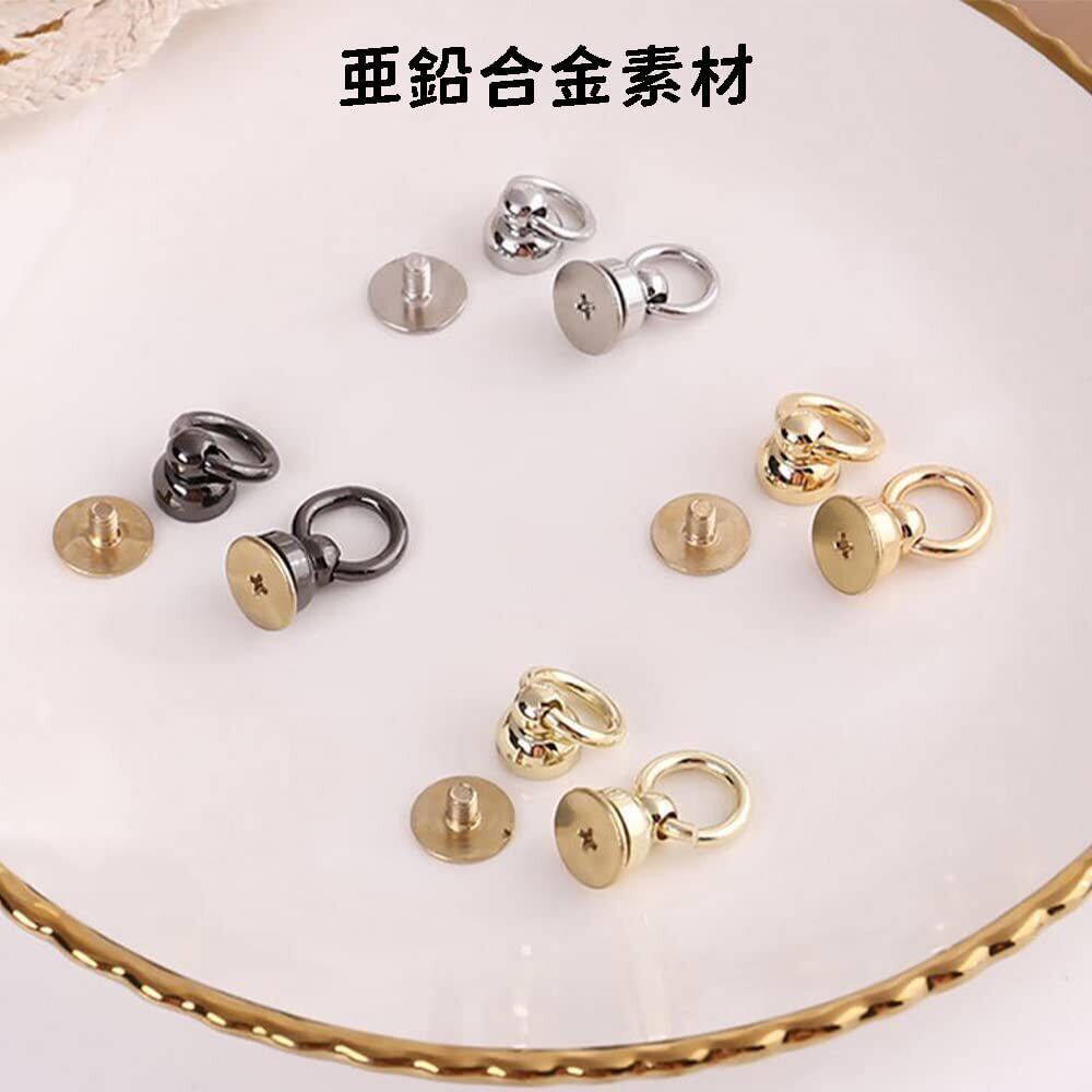 【パーツはネジ式だから取り付けが簡単】 取り付けたい箇所に穴がなければ、2〜3m程度の穴を空け、ネジを通して締めるだけです、好きな場所に丸カンをつけることができます、*厚さ2.5mm程度までの生地を推奨。