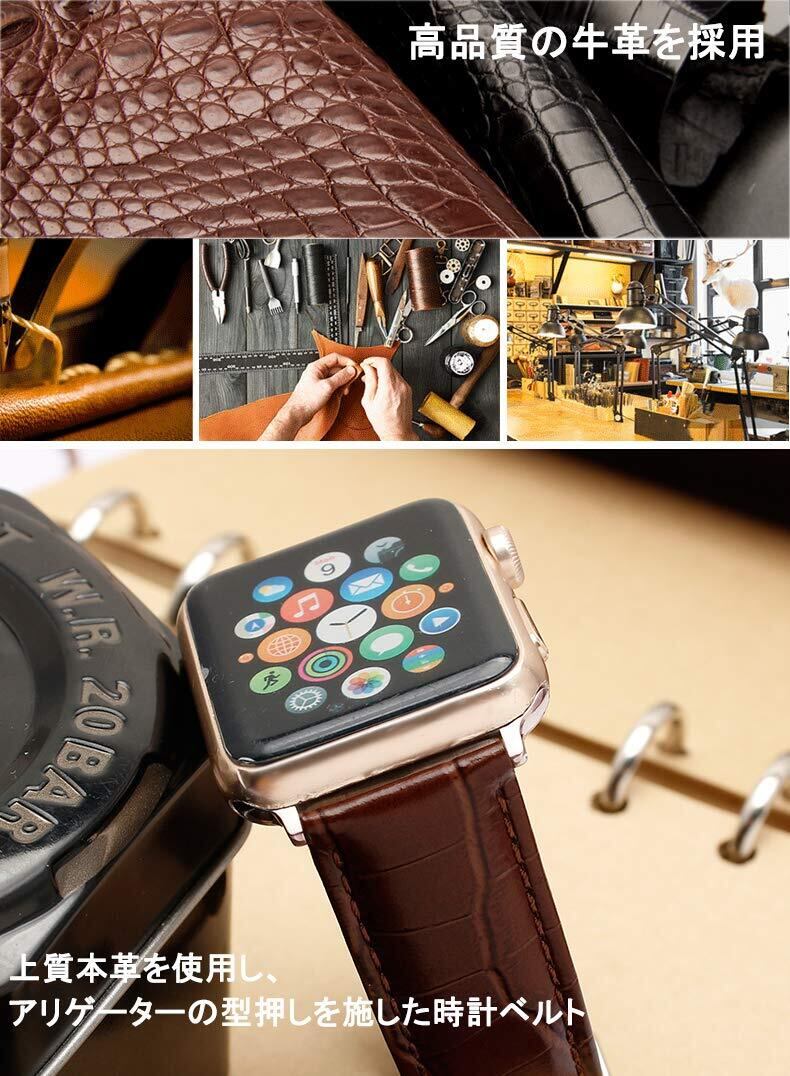 高級感と実用性の両立 : アップルウォッチ バンド 高品質の牛革で作られた本革のバンドは耐磨耗性が強く、それでいて肌触りの良い快適な付け心地を実現しました。