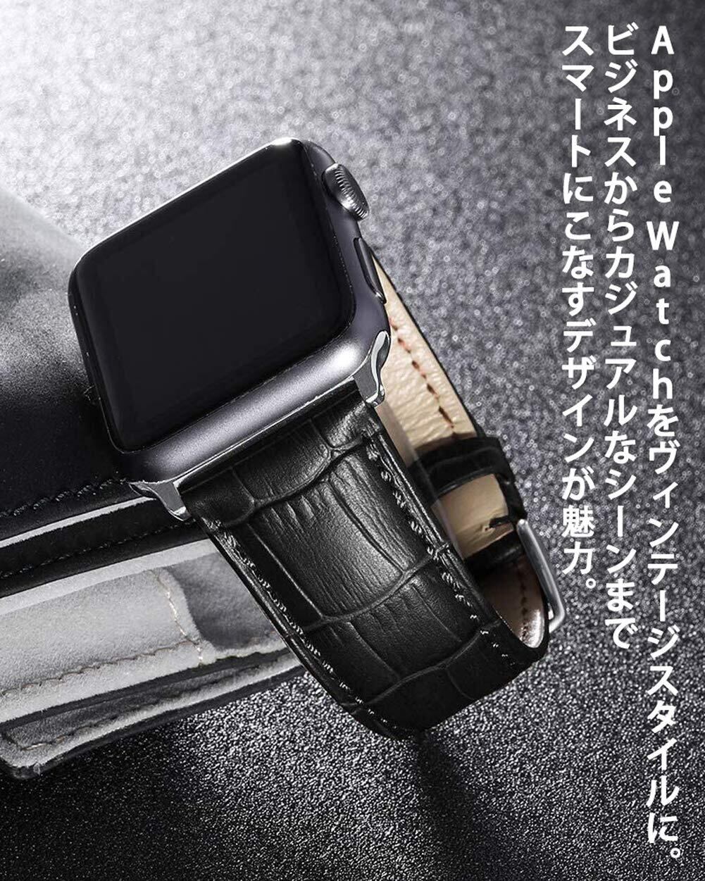 【EWISE】 アップルウォッチ バンド 革 ビジネススタイル コンパチブル 女性にも オシャレ Apple Watch 7 6 5 4 SE シリーズ対応 (38mm・40mm・41mm, ブラック)