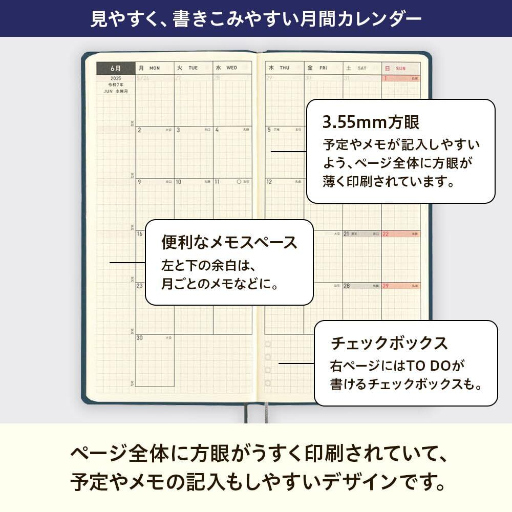 【記入欄】■月間カレンダー/ブロック式、月曜はじまり ■週間予定/レフト式