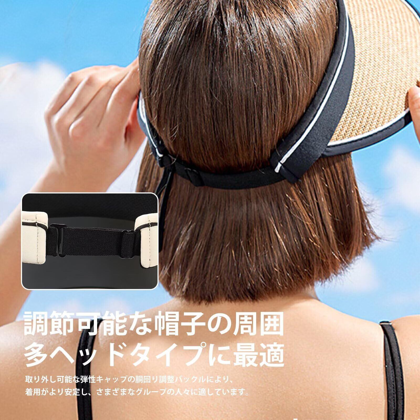 [ZVCXOE] サンバイザー レディース サンハット 麦わら UVカットUPF+50 日除け帽子 春夏 つば広 小顔効果 吸汗速乾 飛ばない 折りたたみ ストローハット アウトドアテニス ゴルフ スポーツ 自動車