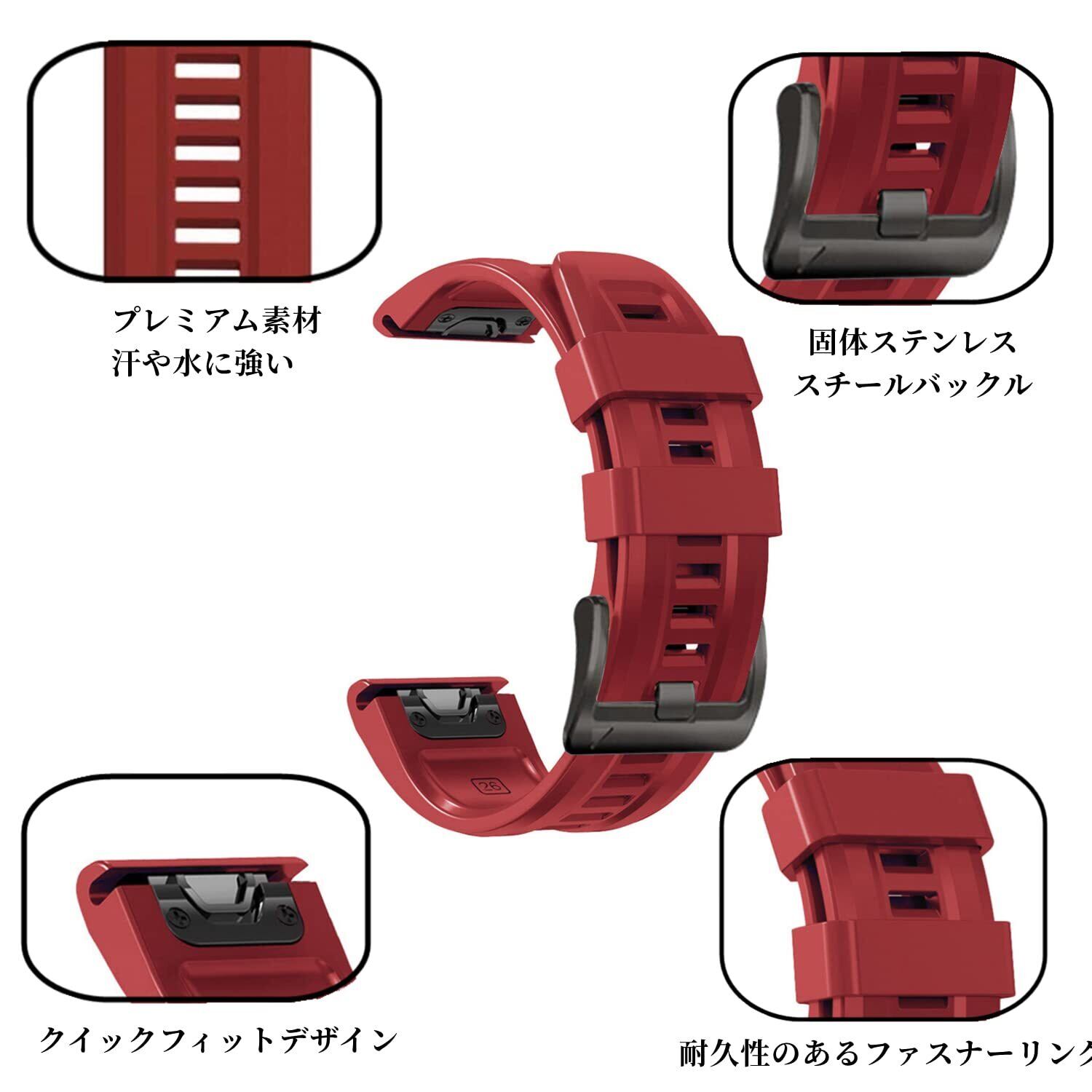 Ankersaila 22mm バンド Compatible with Garmin Fenix 7/Fenix 6/Fenix 6 Pro/Fenix 5/Fenix 5 Plus/Forerunner 945/forerunner 935,ソフトシリコンバンド クイックリリース式 交換 ベルド (赤)