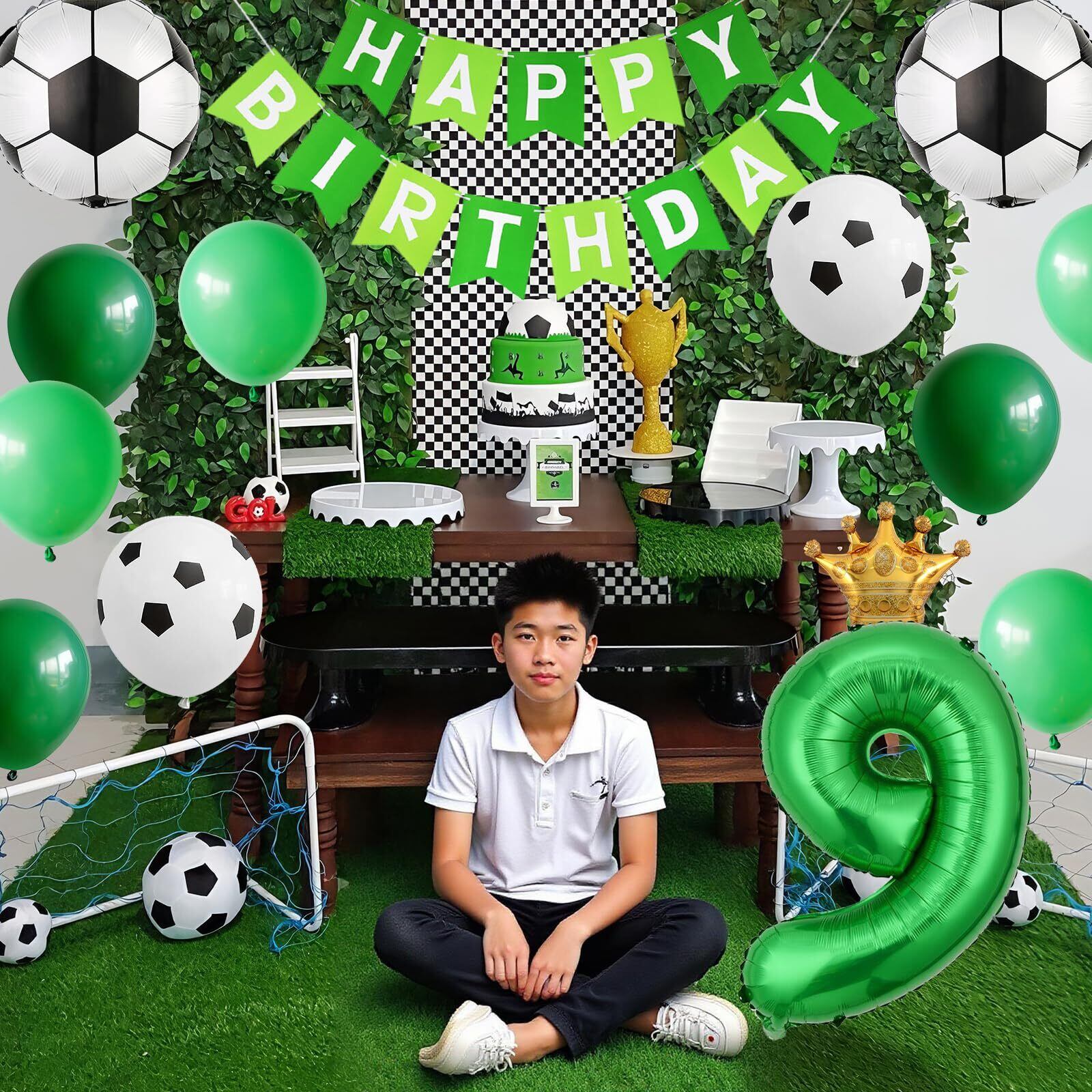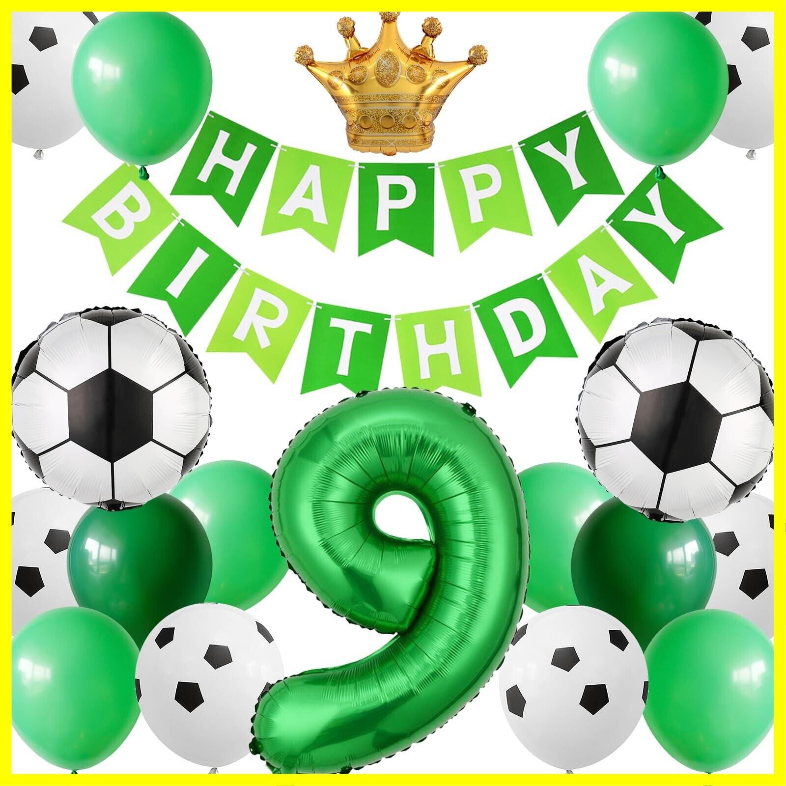 BTZO バルーン 誕生日 9歳 サッカー 風船 数字9 飾り付け バースデー パーティー スポーツパーティー 試合 応援 サプライズ デコレーション 店舗装飾 フットボール 蹴球 グリーン