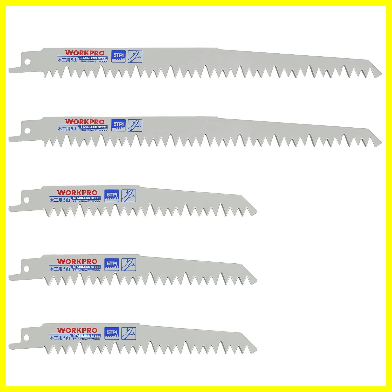 WORKPRO レシプロソー替刃 電気のこぎり替え刃 枝切り用 生木 枝打ち 果樹剪定 庭木剪定 230mm 152mm 5本組 5山