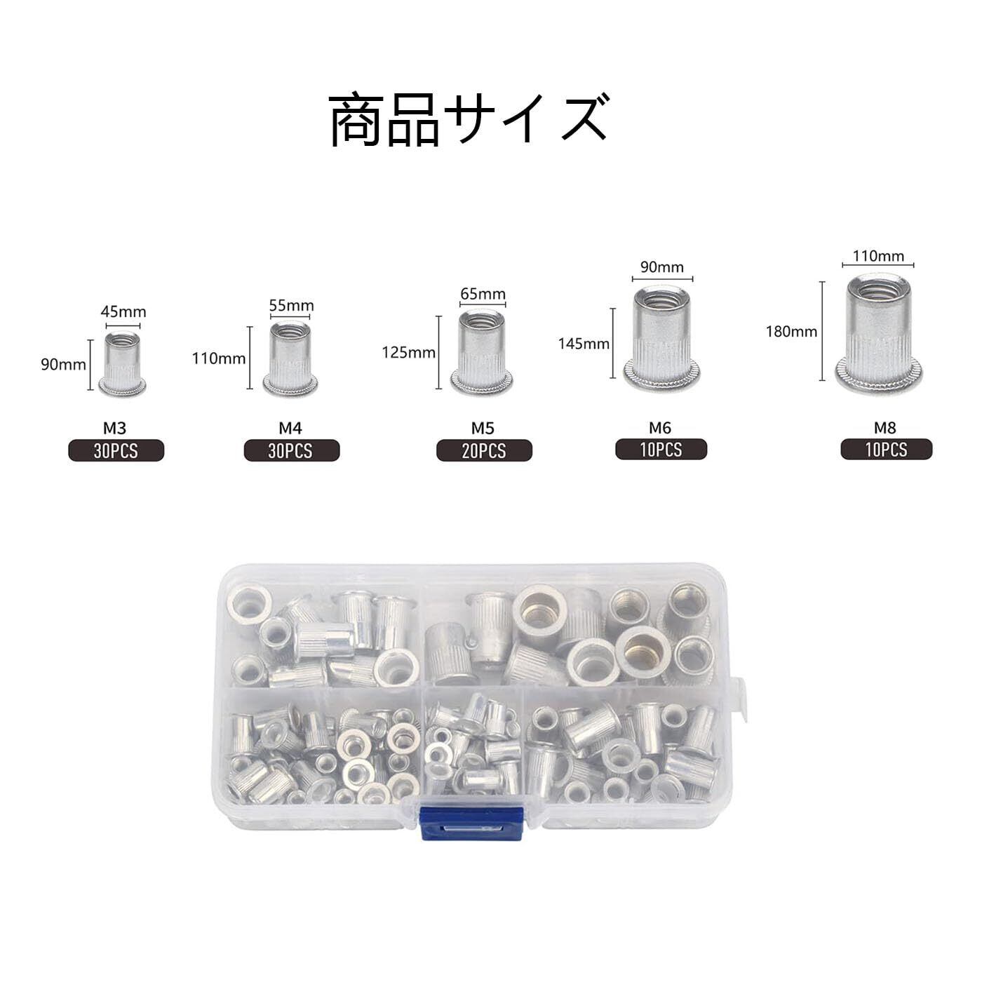 リベットナット アルミニウム製 ブラインドナット DIY 機械 車 修理 部品 収納ケース付き 100個入 (M3 M4 M5 M6 )