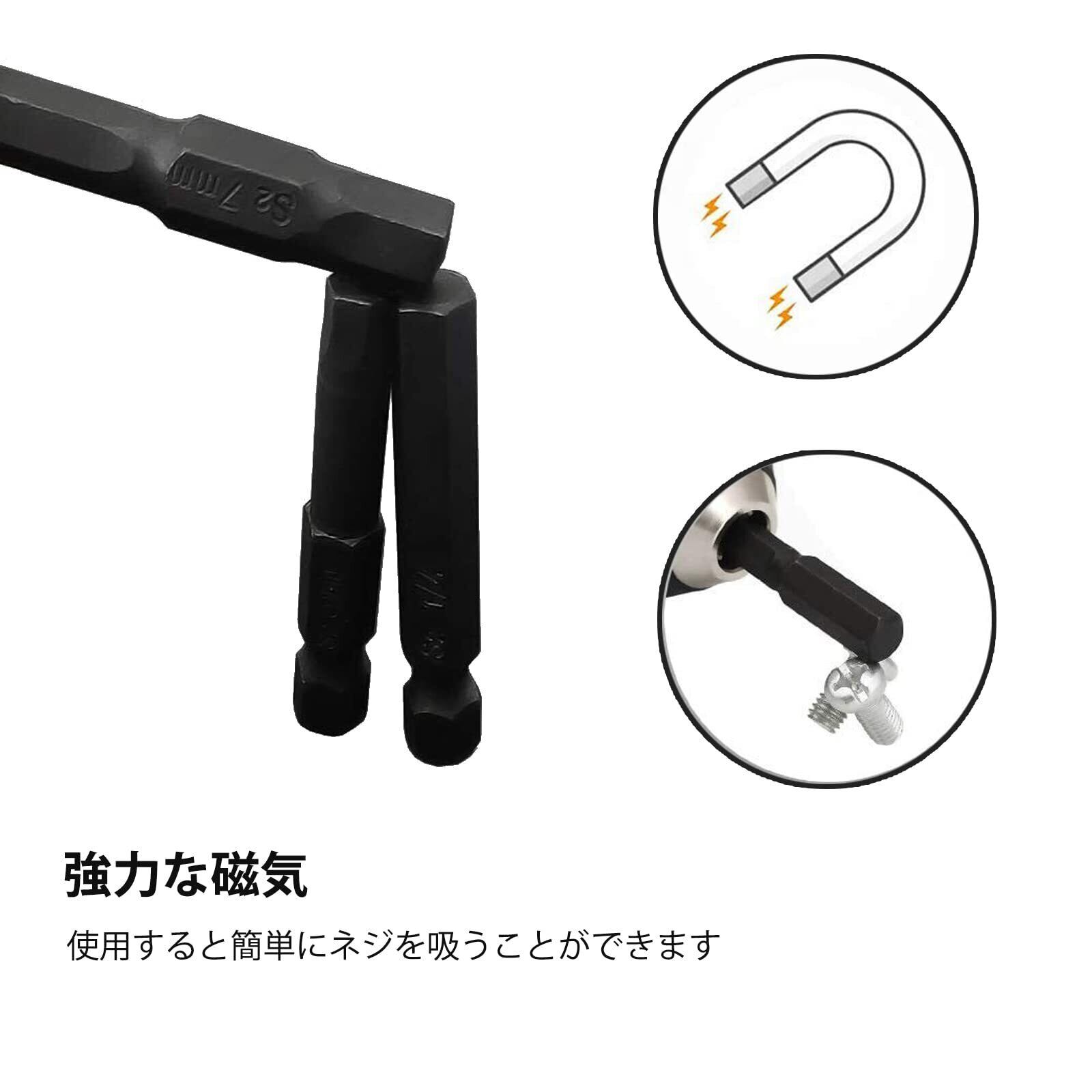 【磁気】この 六角ドライバービット は強力な磁気吸着力を持って、ネジやドライバーのヘッドを損傷することなく正確にネジをロックでき、作業効率が向上します。