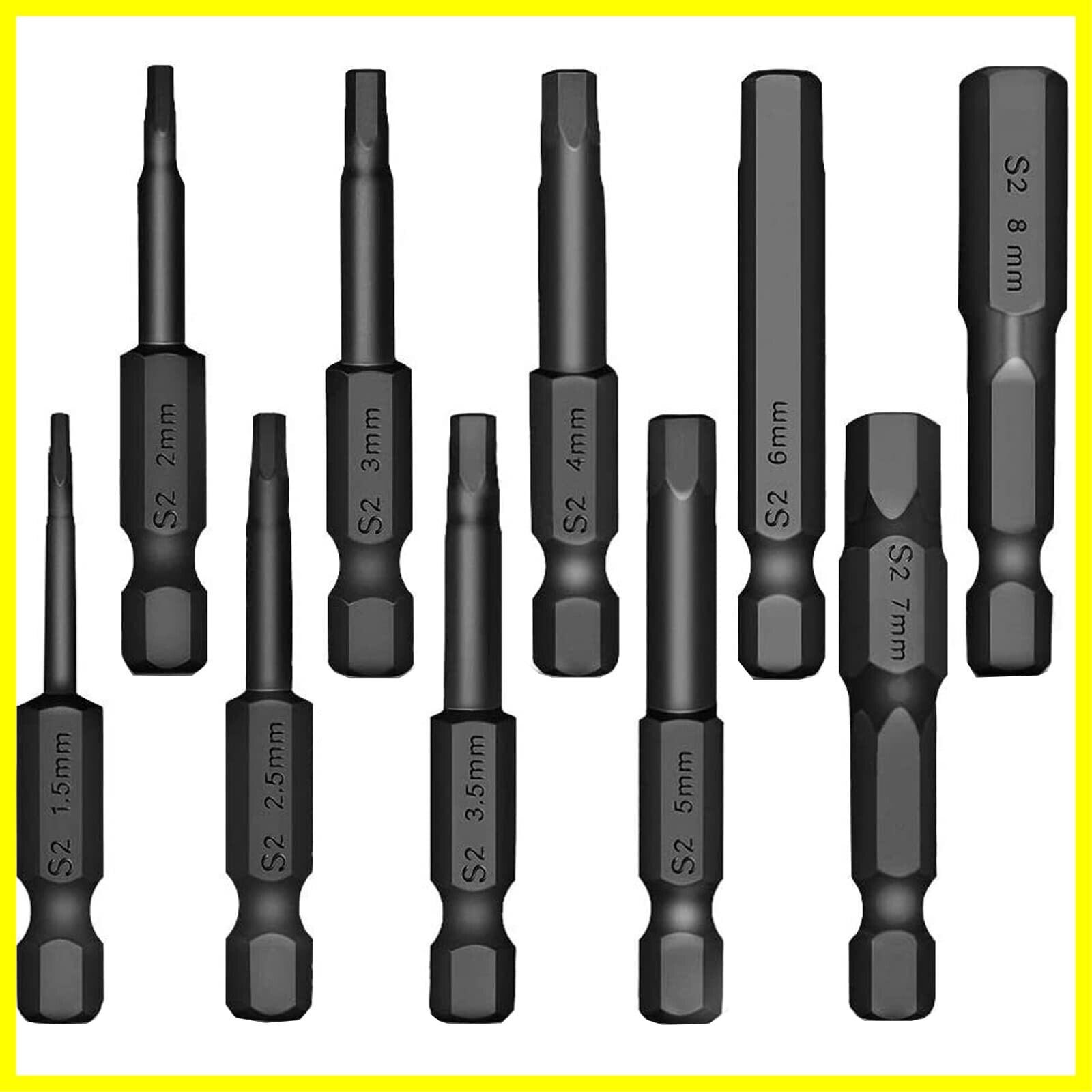 EUSTACE 10本入り 六角ビット ドライバービットセット 6.35mmシャンク 1.5mm~8mm 六角レンチビットセット S2鋼 電動ドライバービット 磁気 ねじ締めドリル用ヘキサゴンビット 50mm 長 黒