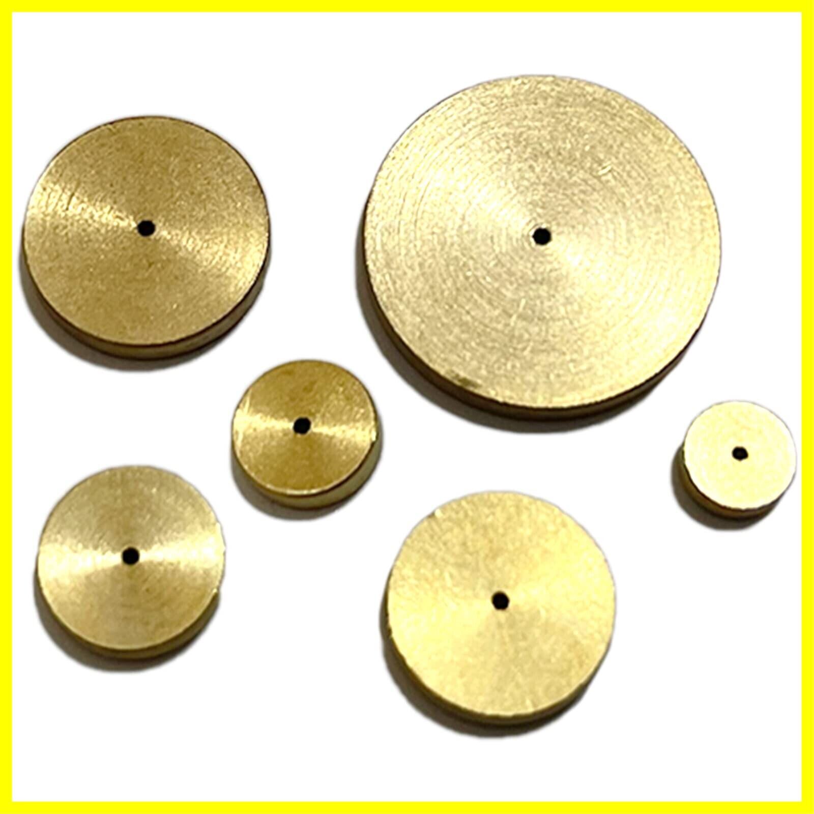 この真鍮製の丸型ヘリ定規セットは、レザークラフトや手芸の型紙作成時に役立つ便利なツールです。直径20mm、14mm、12mm、10mm、8mm、6mmの6種類のサイズが揃っており、幅広い用途で活用できます。型紙に合わせて正確な位置に線を引いたり、均一なマージンを確保する際に便利です。