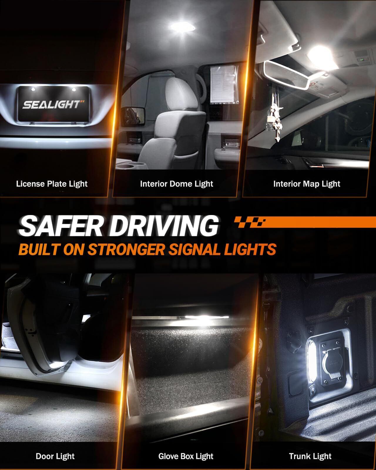 SEALIGHT t10 led ルームランプ ポジションランプ ナンバー灯 3030SMD 明るいLEDチップ 高輝度 6000K スモールライト ドームライト マップライト ドアライト 爆光 車検対応 無極性 50000時間寿命 168 2825 W5W 10個セット (ホワイト)