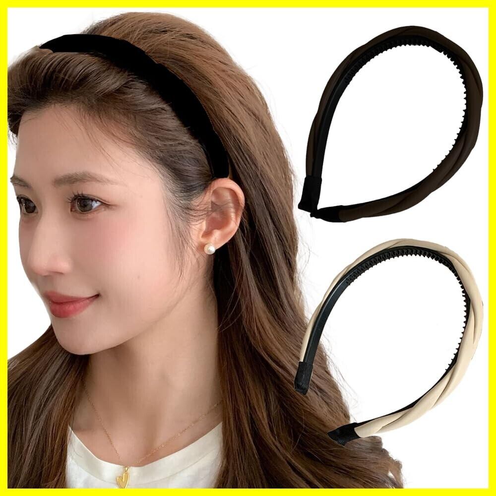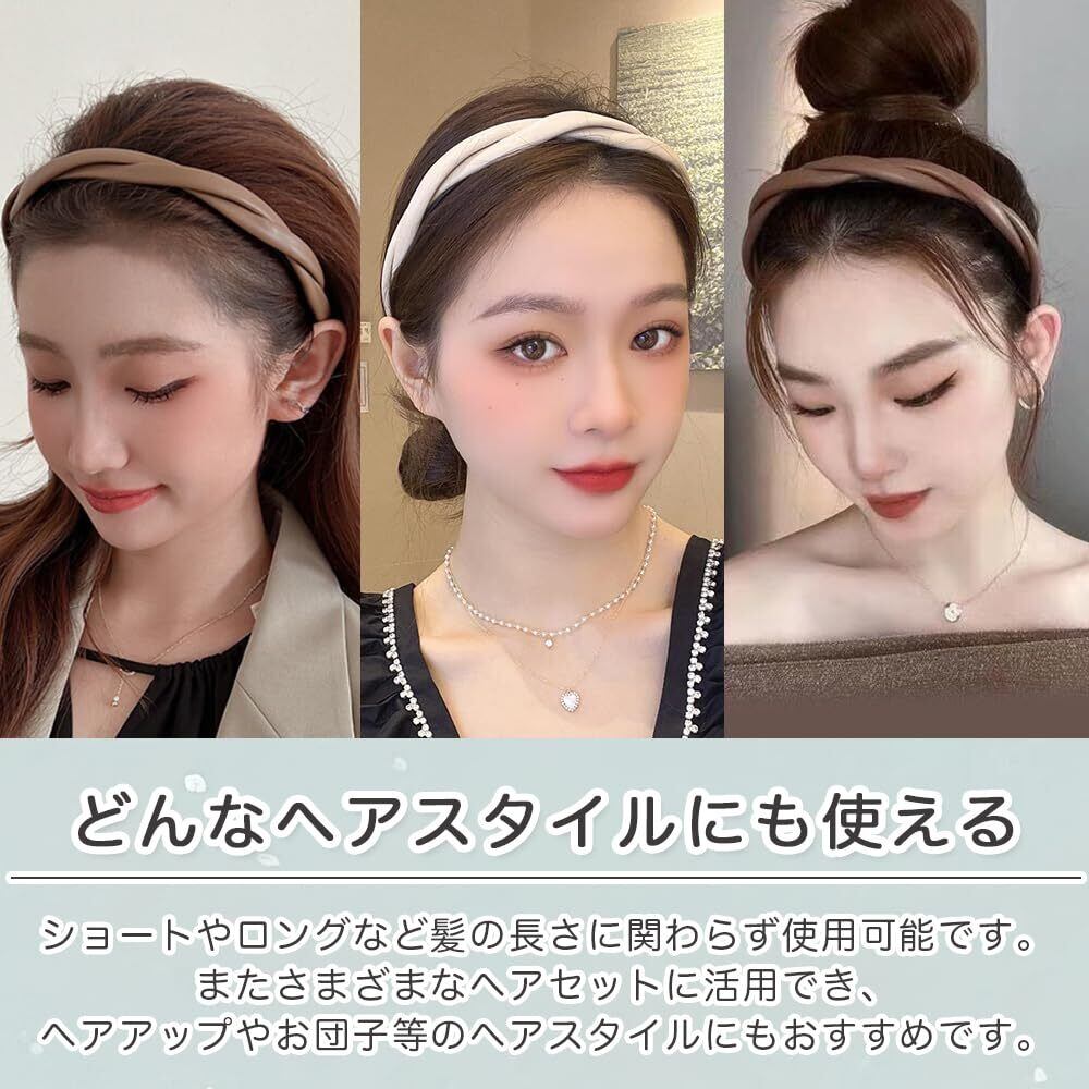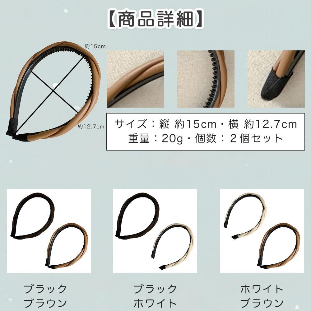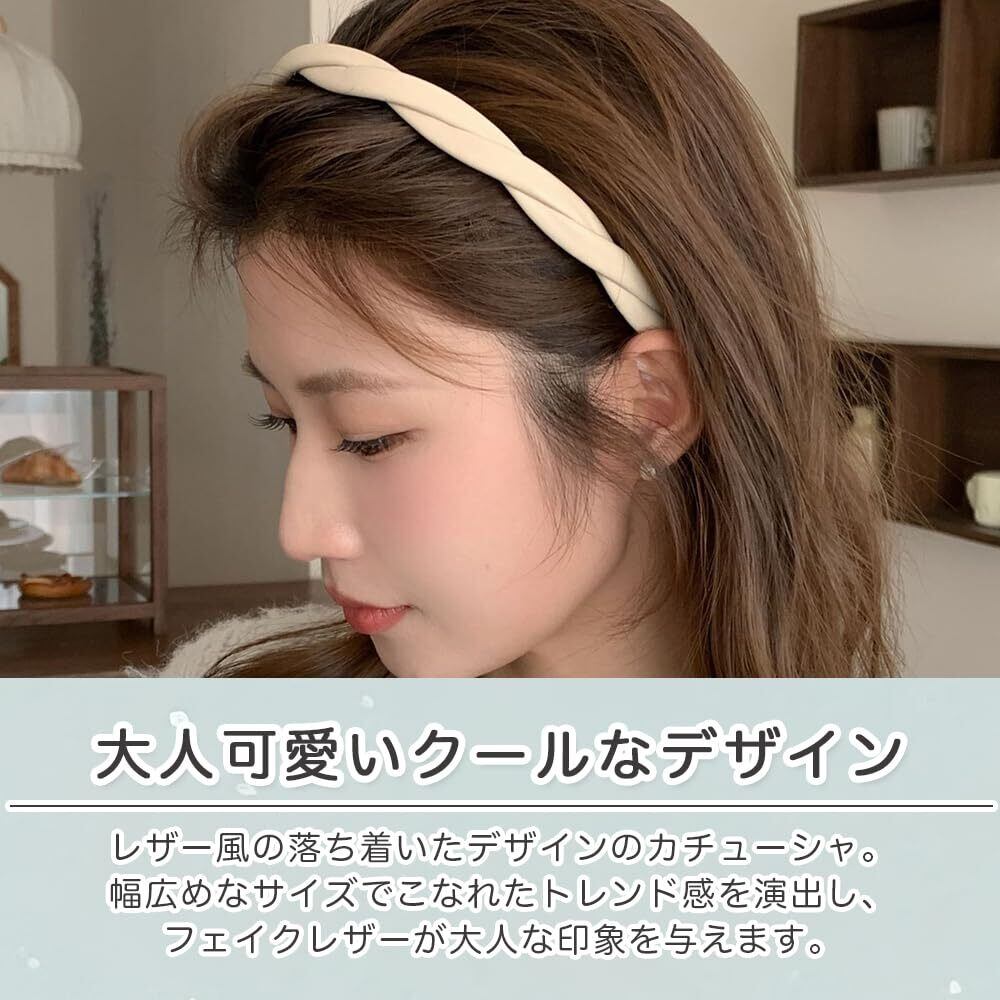 ロドリーミシェ カチューシャ フェイクレザー 痛くない ヘアバンド オシャレ シンプル コーム付き カワイイ ヘアアレンジ ツイスト 編み込み風 ヘッドバンド レディース No90 ブラック ホワイト