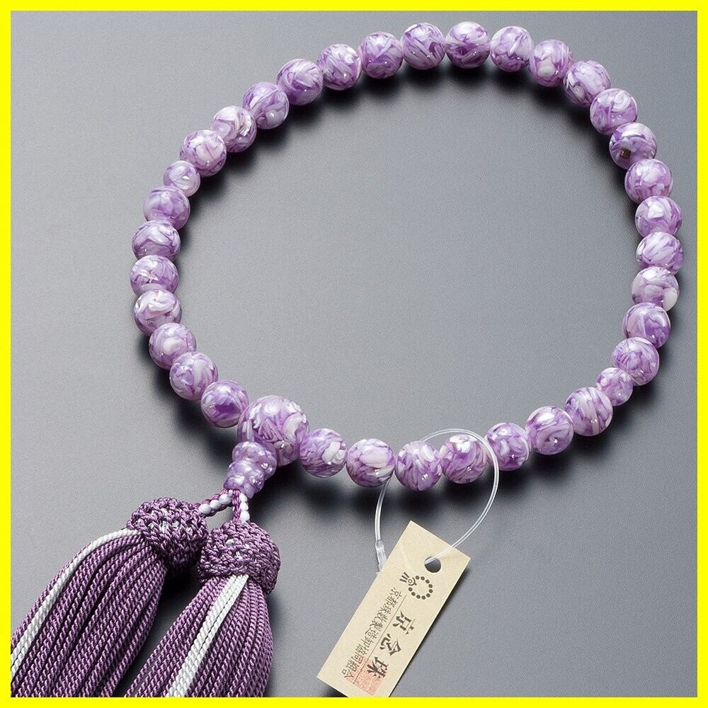仏壇屋 滝田商店 京念珠 数珠 女性用 ラベンダーシェル 8mm玉 正絹頭付房 数珠袋付 すべての宗派で使える女性用数珠 証明書付