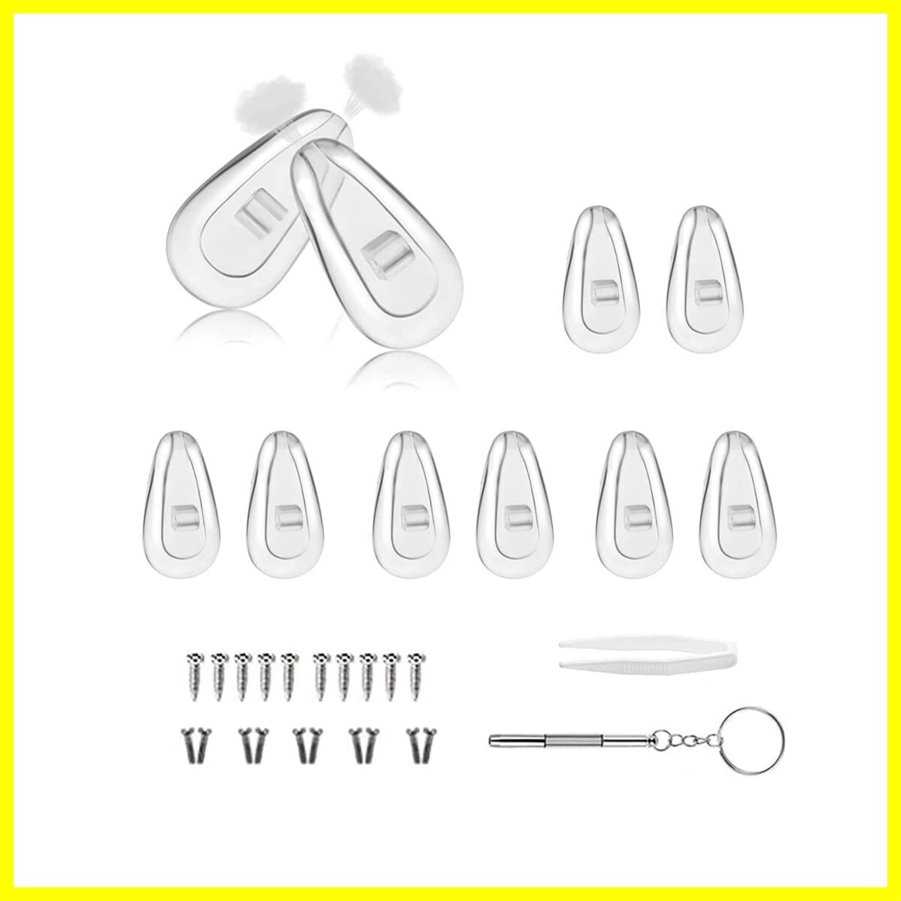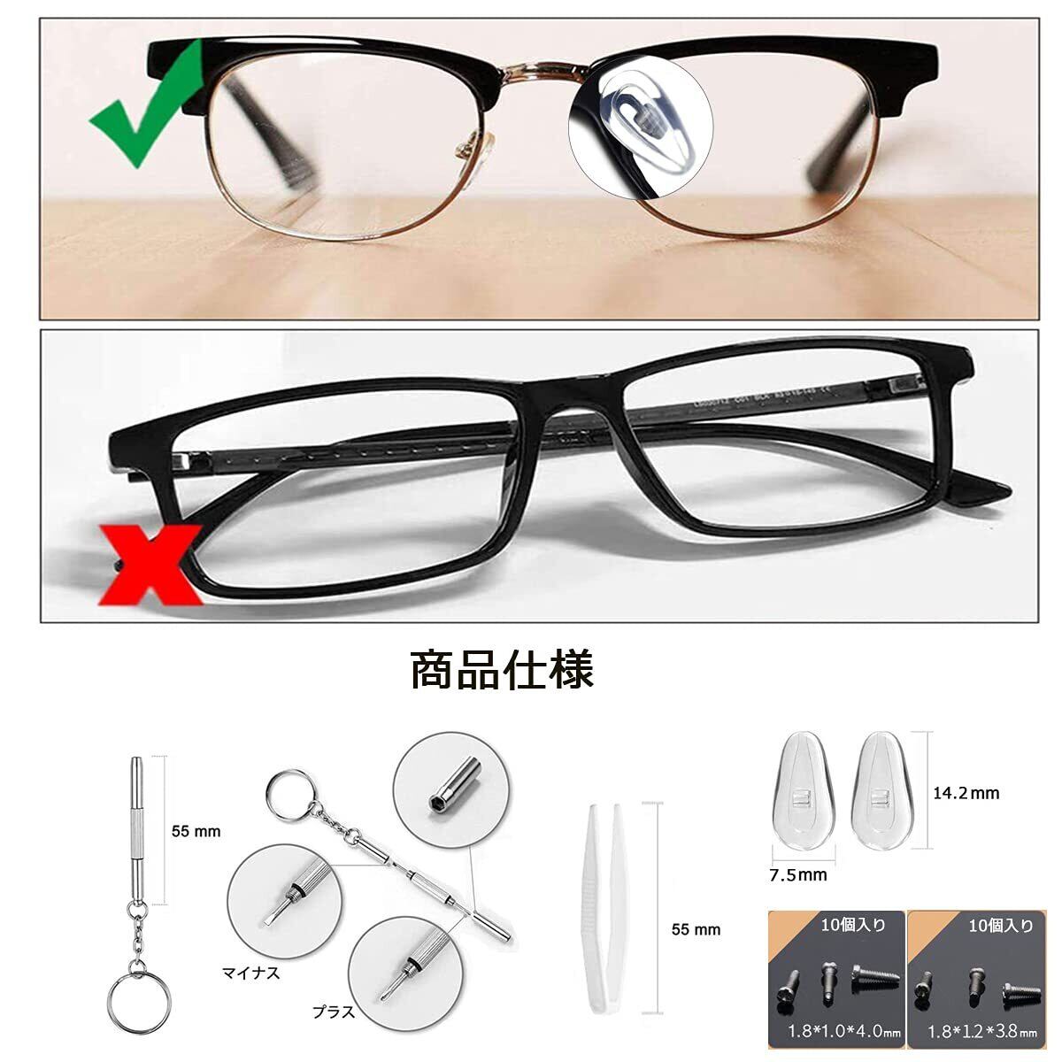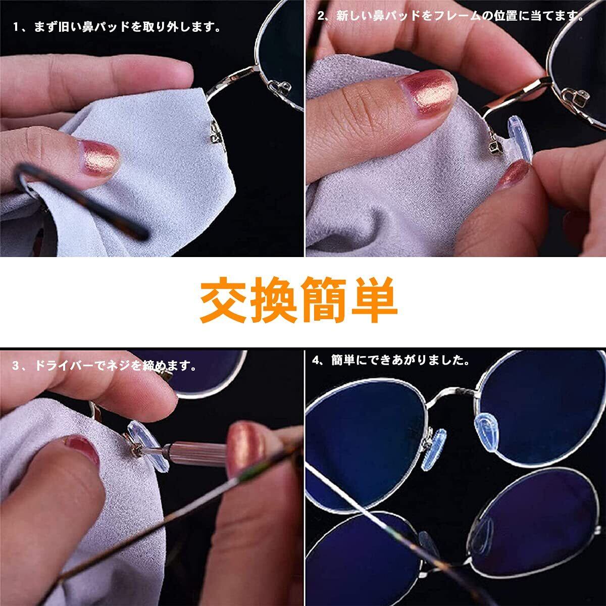 [PureSino] 鼻パッド メガネ 鼻パッド 眼鏡鼻パッド メガネ用 鼻あて エアクッション 5ペア パッド跡軽減 メガネずれ落ち防止 ノーズパッド 柔らかい シリコン製 交換セット ピンセット ドライバー ネジ付き