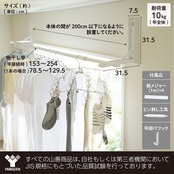 ●本体サイズ(約):収納時/幅7.5×奥行3×高さ31.5cm、使用時/幅7.5×奥行31.5×高さ31.5cm●物干し竿サイズ(約) : 幅78.5~129.5×奥行3×高さ3cm、接続時/幅153~254×奥行3×高さ3cm●構造部材:本体/AES樹脂、カバー/ABS樹脂、物干し竿/金属(スチール)●耐荷重:10kg(竿全体)●東証プライム(株)山善で扱うすべての山善商品は、自社もしくは第三者機関において、JIS規格に基づいた品質試験を行っております。