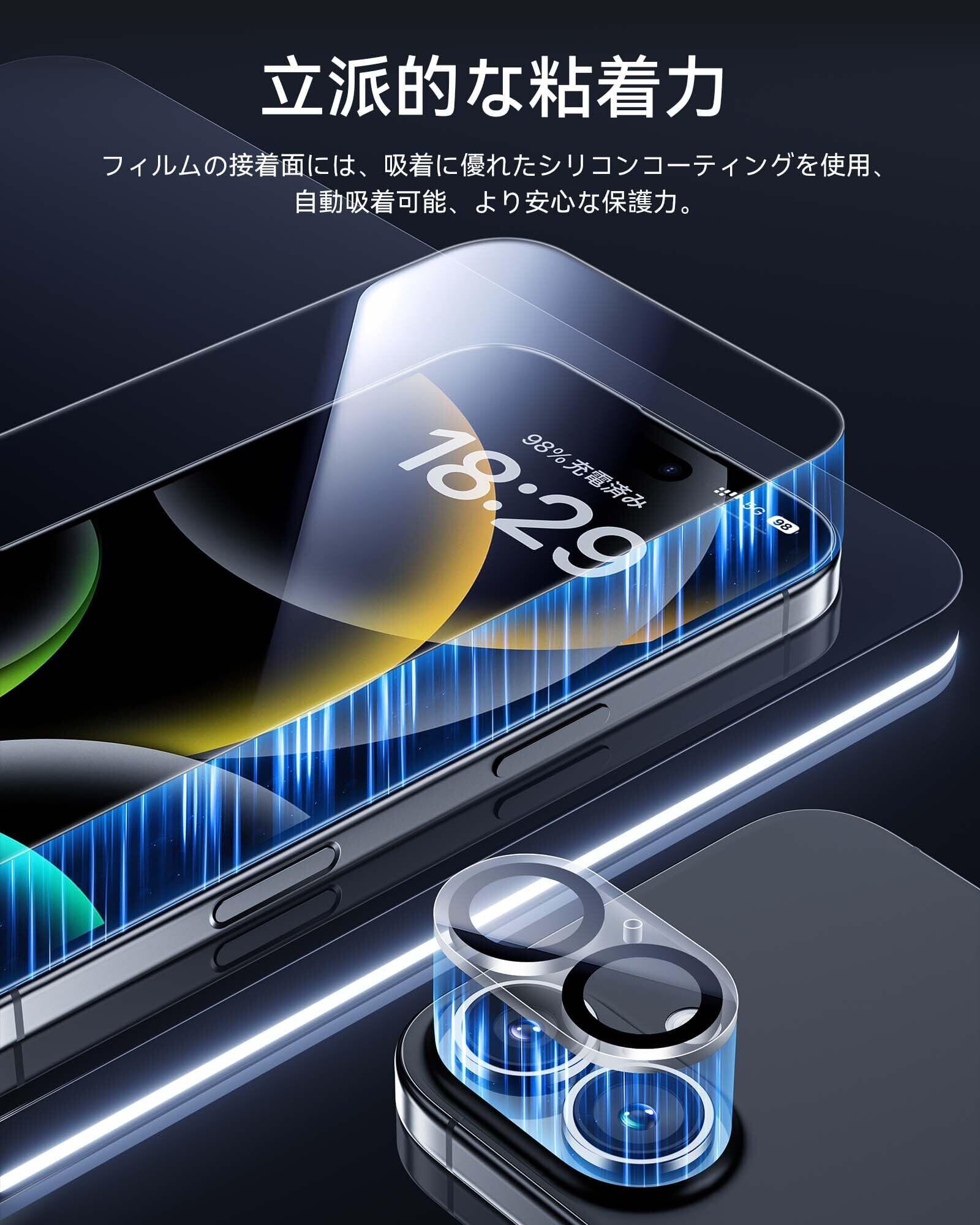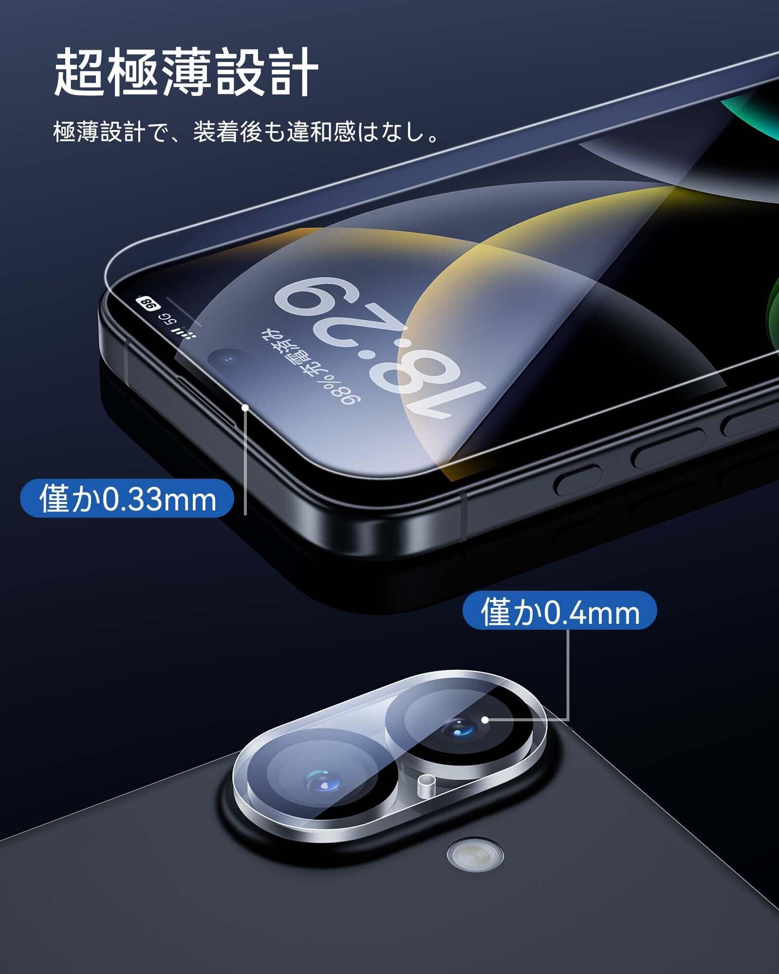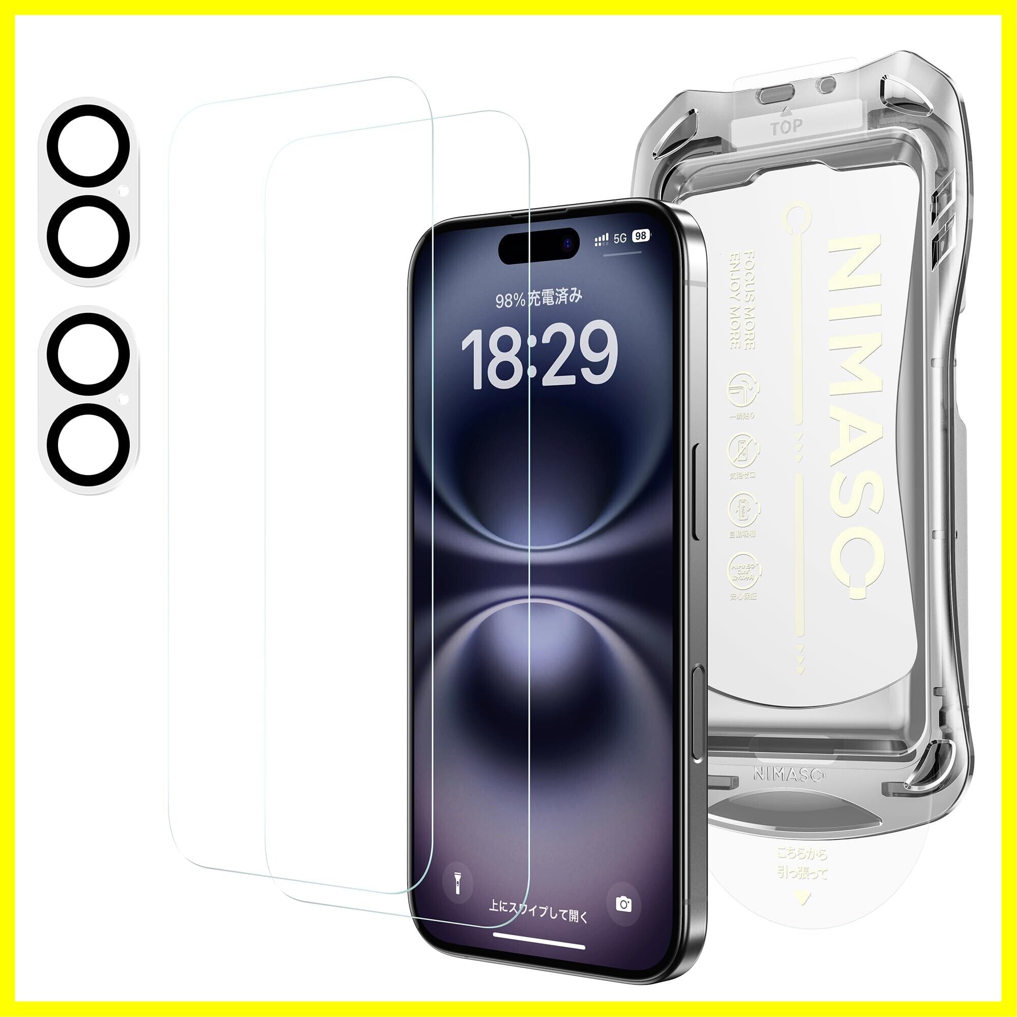 NIMASO ガラスフィルム (2枚) + カメラフィルム (2枚) iPhone 16 Plus用 強化ガラス カメラ 保護フィルム 4枚セット 耐衝撃 指紋防止 ガイド枠付き アイフォン 16 プラス(6.7インチ)対応 DFP24G1386