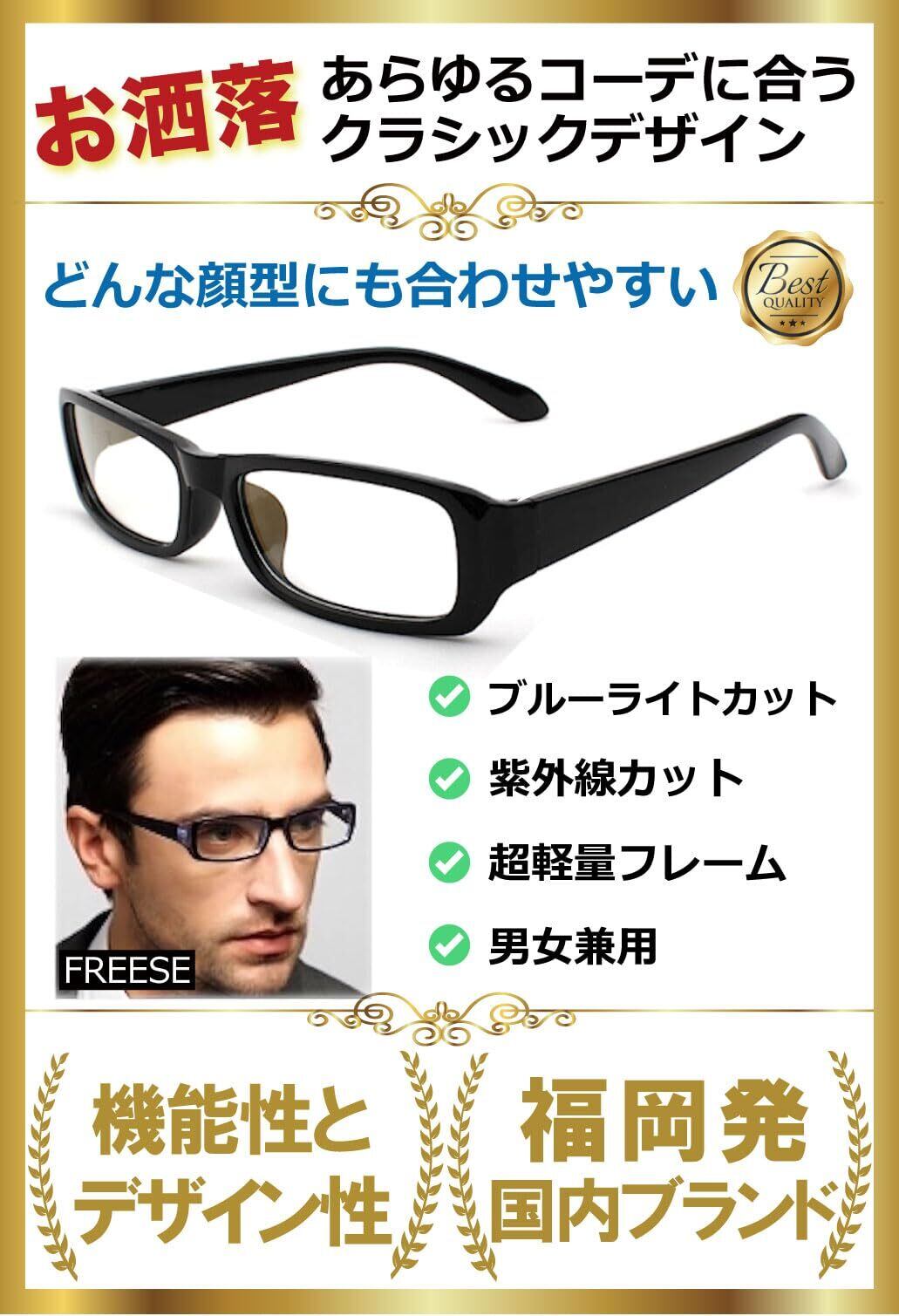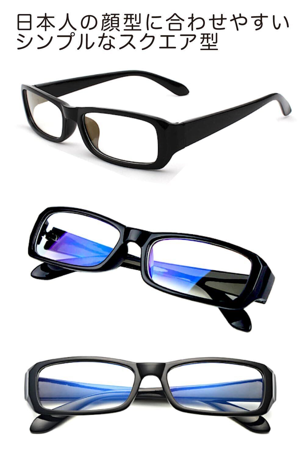 [FREESE] 超軽量 伊達メガネ ブルーライトカットメガネ 黒縁 UVカット スクエア メンズ
