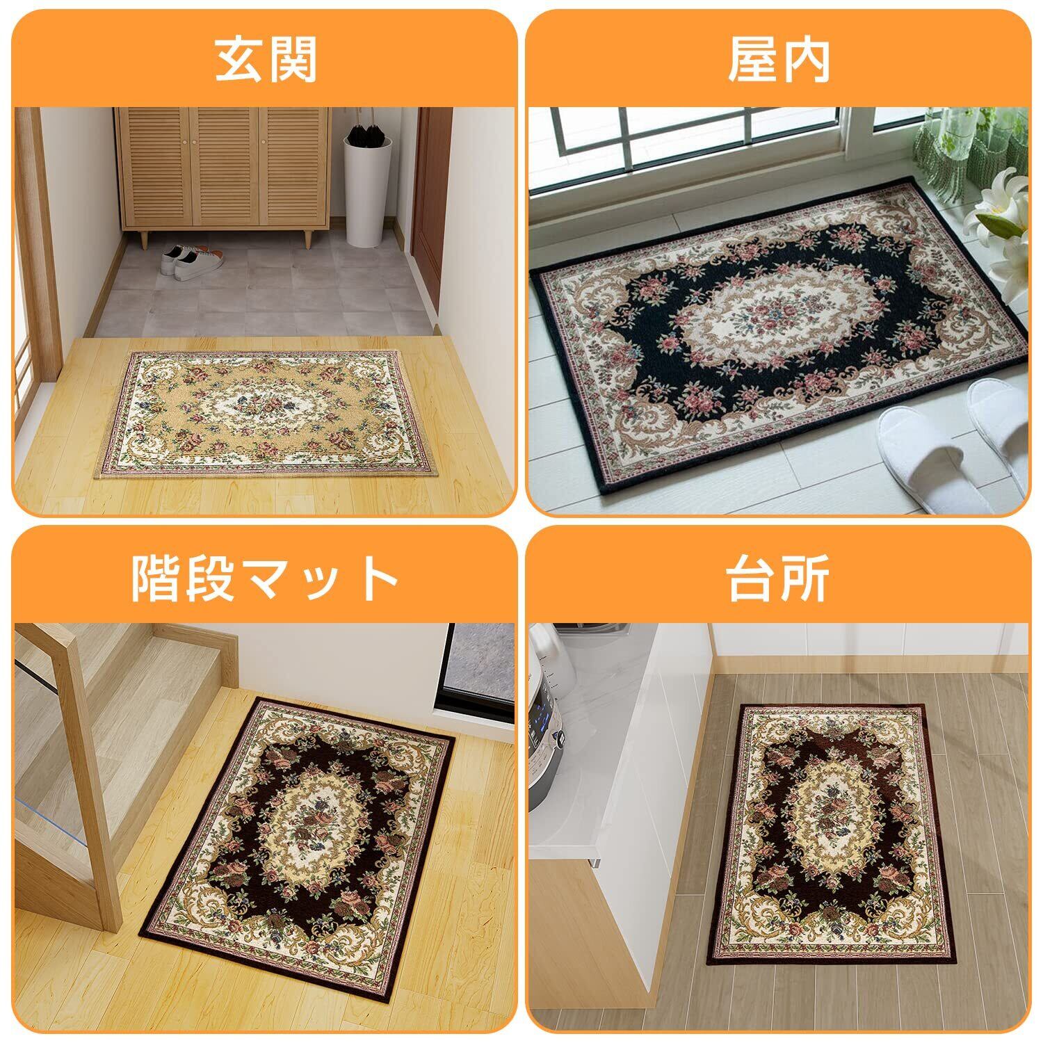 【製品仕様&様々な場合で大活躍】仕様:サイズ:60x90 cm ;二重織り 端部の厚み:10mm ;平織り平面の厚み:5mm ;表地:ポリエステル95% +コットン4% +その他1% 裏地:不織布(ポリエステル100%)様々なところに適しています。 玄関マットだけでなく、ドアマット、階段マット、洗面所マット、キッチンマットなどの室内マットに使用できます。