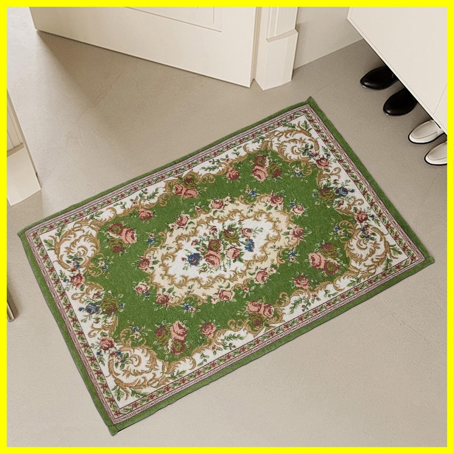 玄関マット 室内 おしゃれ 花柄 洗える 玄関マット 泥落とし ゴブラン織り 滑り止め 60×90 丸洗い 玄関 マット 北欧 屋内 自宅 吸水速乾 抗菌防臭 耐磨耗性 滑り止め 床暖房対応 オールシーズン適用マット (グリーン), F