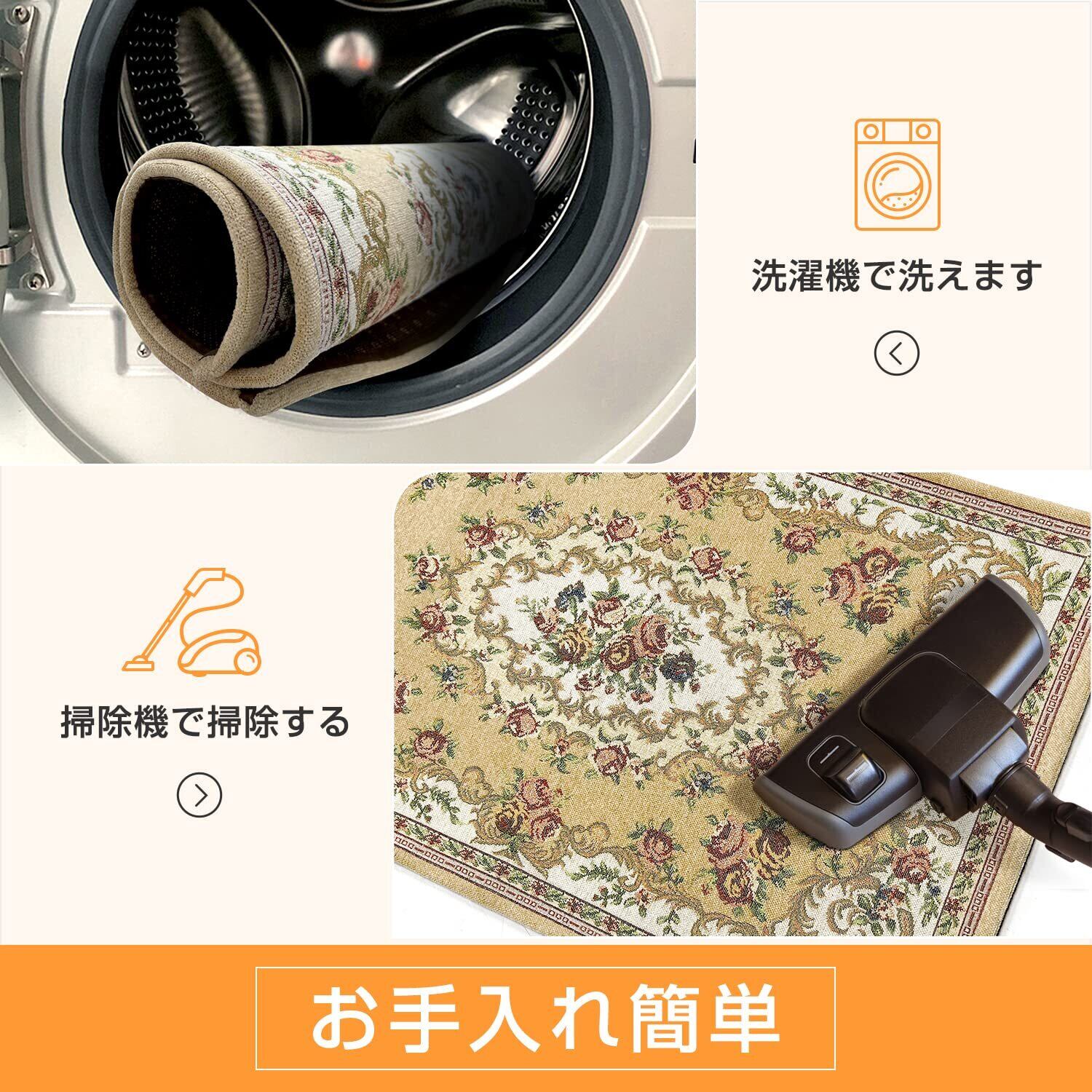 【水洗可能で耐久性のある材質】本製品は長毛のカーペットに比べて、毛足が短いので、ゴミが絡みにくく、いつでも清潔を保つすることができます。丁寧に作られた縁とほつれにくい毛糸を基づいてマットの耐久性はいいで、掃除機をかけても大丈夫です。長期使用後は手洗いも洗濯機も可能です。 優れた耐久性により、洗濯機で洗っても変形しないです。