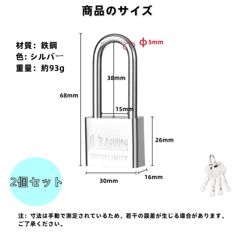 【商品詳細】サイズ:68*30mm。 セット: 2 個、各南京錠には 4 つの鍵が付属します。 色: シルバー。 材質: ステンレス鋼。