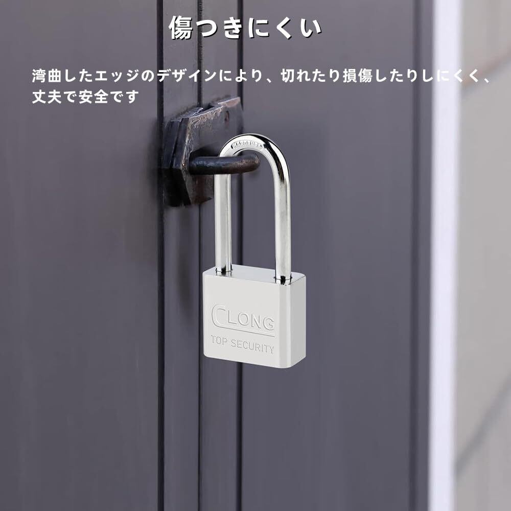 【紛失防止】各南京錠には鍵が4本付属しているので、紛失する心配がありません。 また、南京錠のシャックルは細かく研磨され、手を傷つけない湾曲したデザインを採用しています。